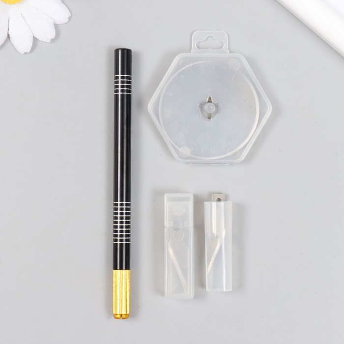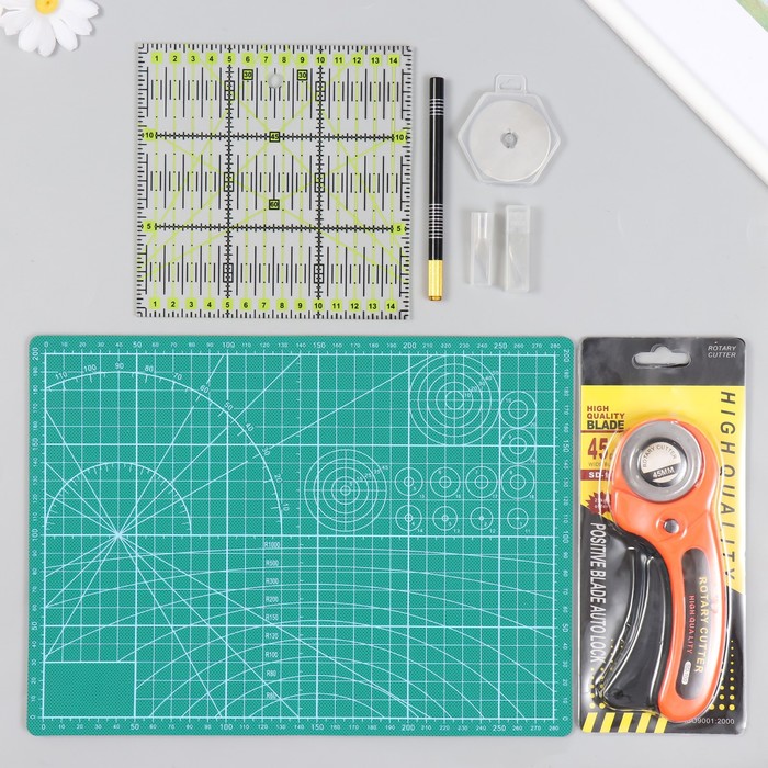Набор для пэчворка: резиновый мат А4, линейка 15×15 см, дисковый, макетный нож+лезвия в папке 10 фото