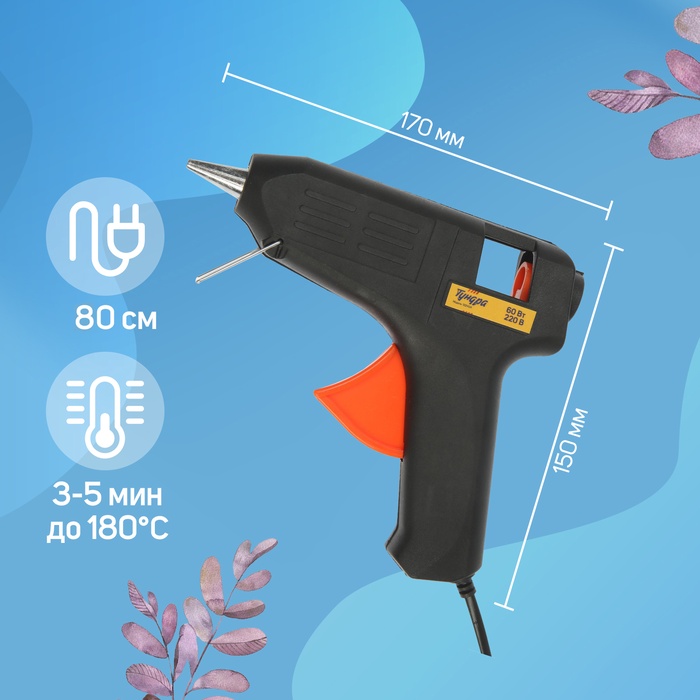 Клеевой пистолет ТУНДРА, 60 Вт, 220 В, 11 мм 10 фото