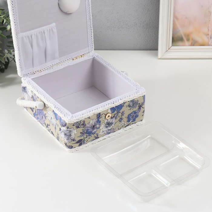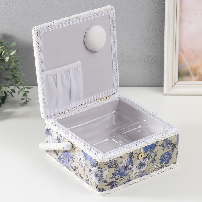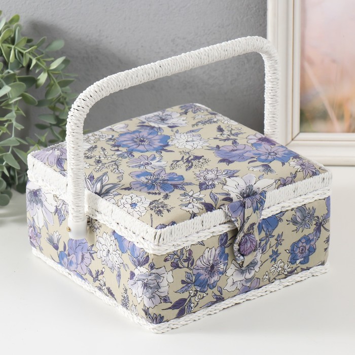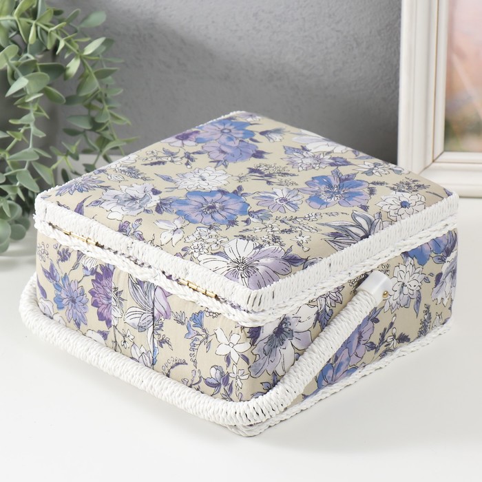 Шкатулка для рукоделия и шитья «Сиреневая цветочная поляна», хранение ниток, иголок, мелочи, 20×20×11 см 5 фото