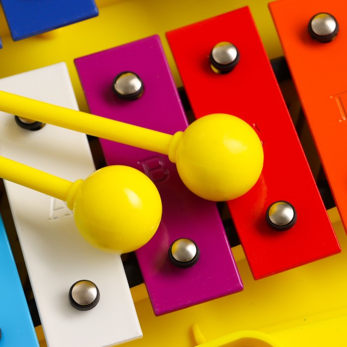 Металлофон музыкальный инструмент Music Life, 25 тонов, футляр, 2 палочки, желтый 5 фото