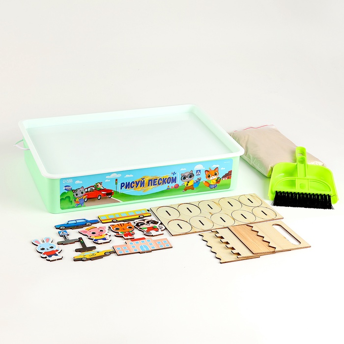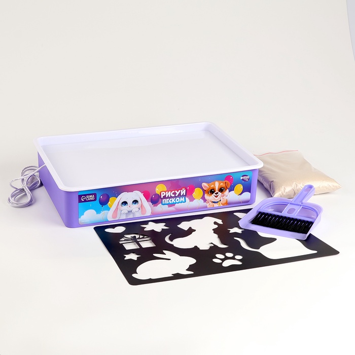 Планшет «Рисование песком», 27×39 см, песок 1 кг, 10 фигурок, набор для творчества 10 фото