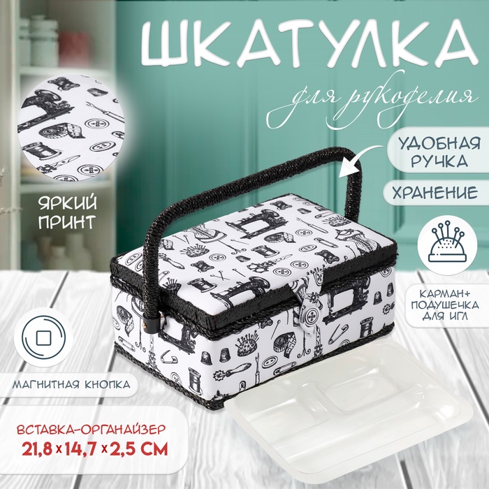 Шкатулка для рукоделия и шитья «Швейные атрибуты», хранение ниток, иголок, мелочи, 24×16×11 см 7 фото
