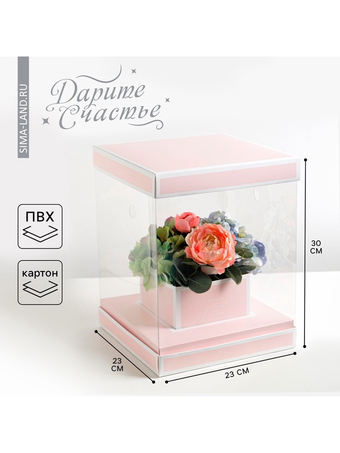Коробка подарочная для цветов с вазой и пластиковыми окнами складная, упаковка, Follow Your Dreams, 23×30×23 см 4 фото