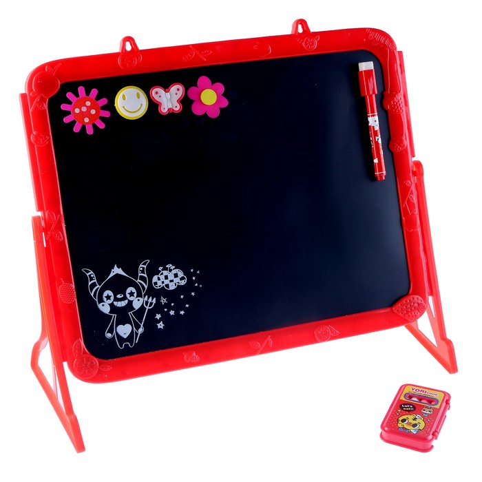 Доска магнитная двухсторонняя, под маркер и мел на подставках (мел, маркер, магниты), МИКС 10 фото