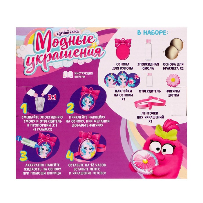 Набор для опытов с эпоксидной смолой «Создай своё украшение: Пони», 2 основы 6 фото