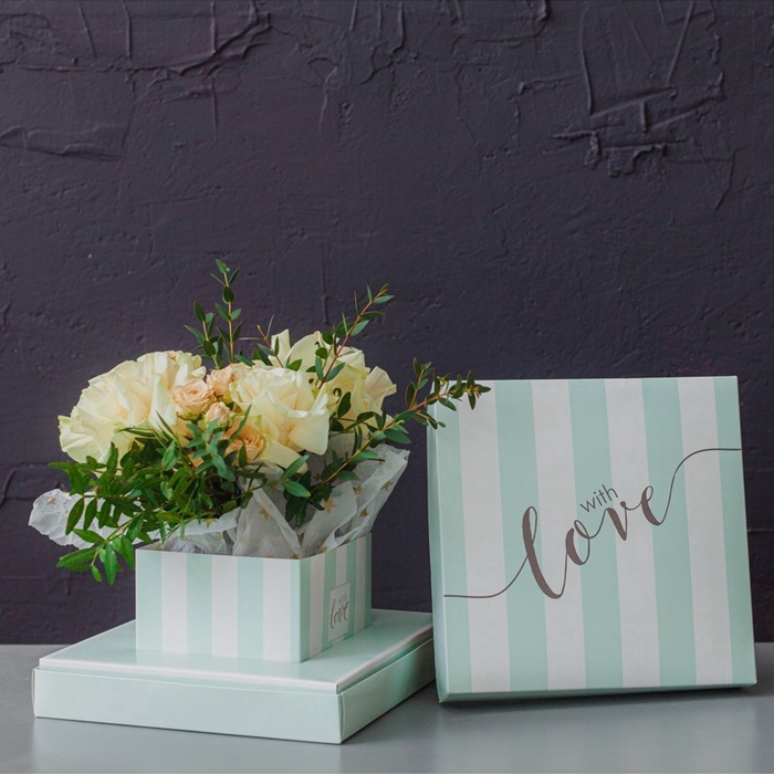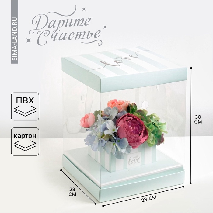 Коробка подарочная для цветов с вазой и пластиковыми окнами складная, упаковка, «With love», 23×30×23 см 4 фото