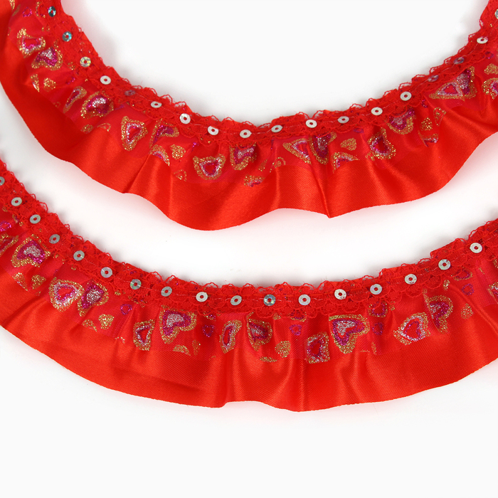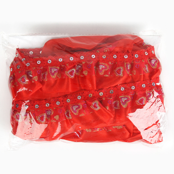 Тесьма, сетка с напылением на красном атласе, 5 см, в рулоне 10 м 4 фото