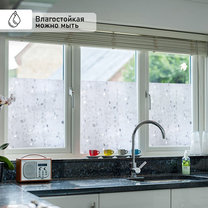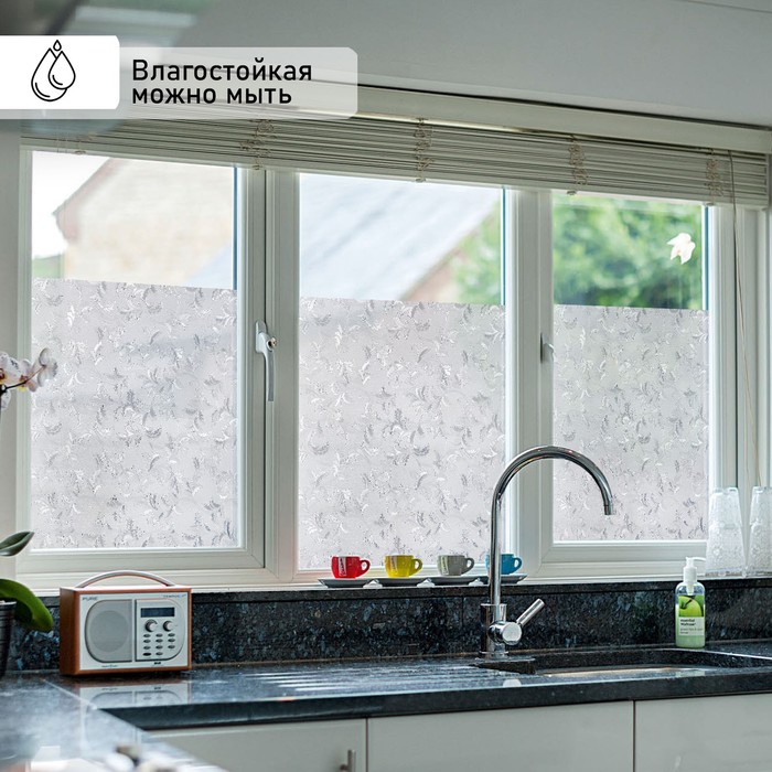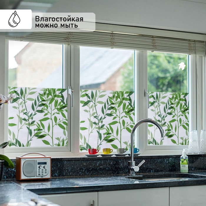 Витражная плёнка «Листики», 45×200 см, прозрачная 7 фото
