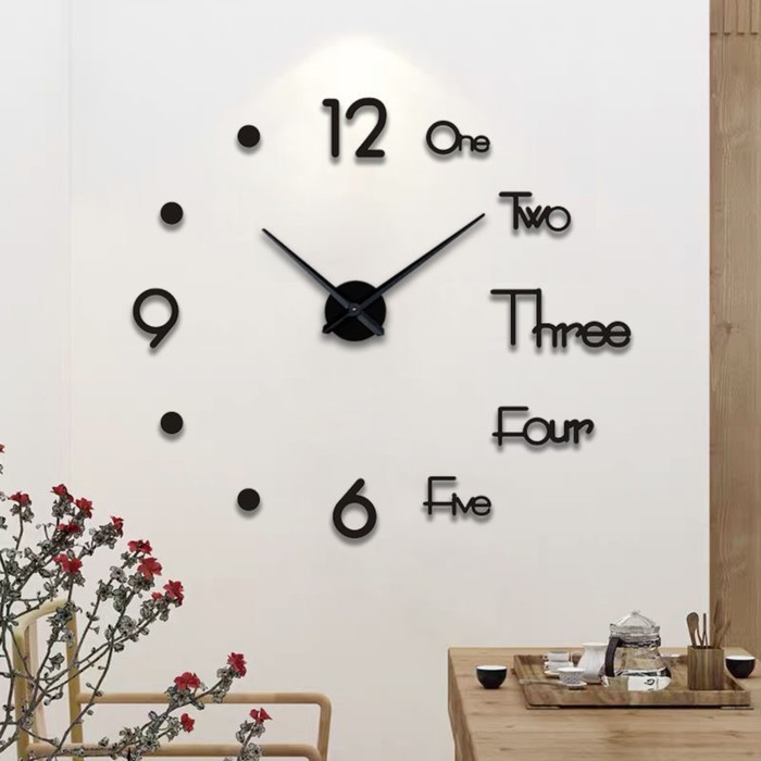 Часы настенные интерьерные, 3d «Элегант», дискретный ход, наклейка, большие, d=120 см, чёрные 5 фото