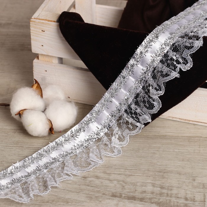 Тесьма, гипюр на атласе с фольгой, 5 см, в рулоне 25 м 3 фото
