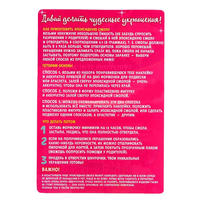 Наборы для опытов «Украшения из эпоксидной смолы: сделай сам кулон и браслеты» 5 фото