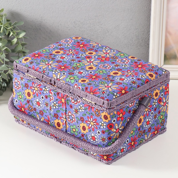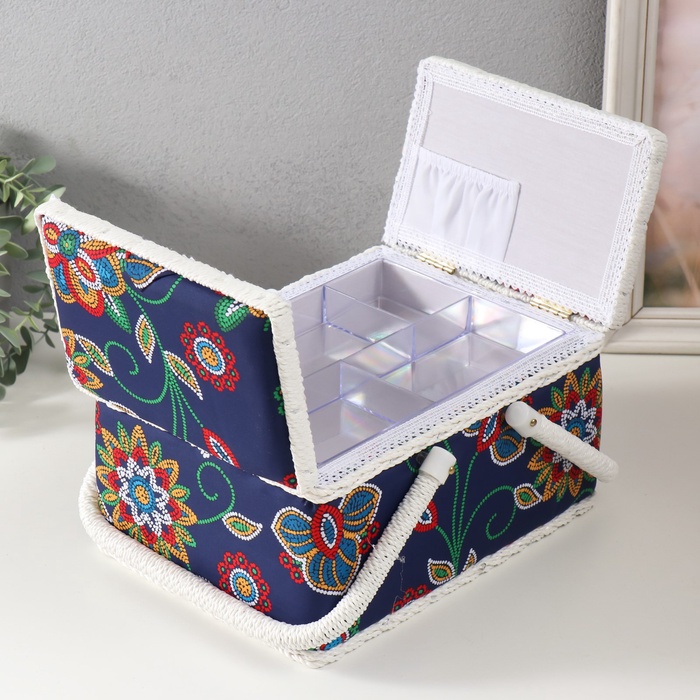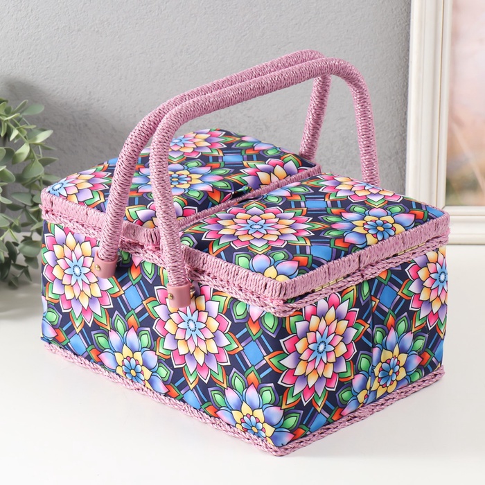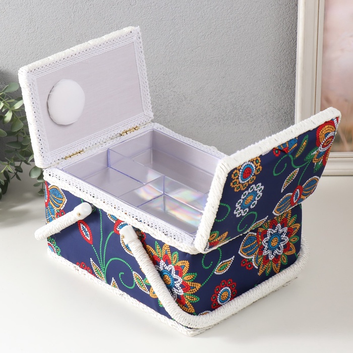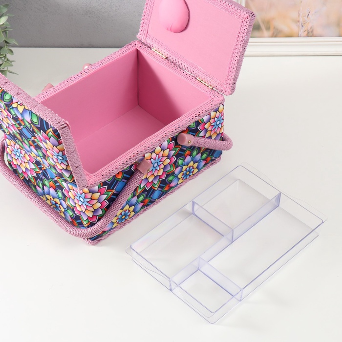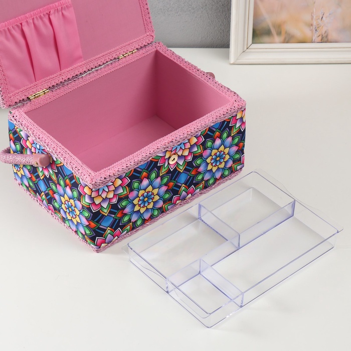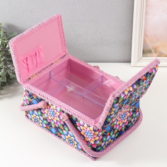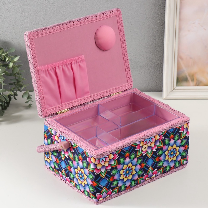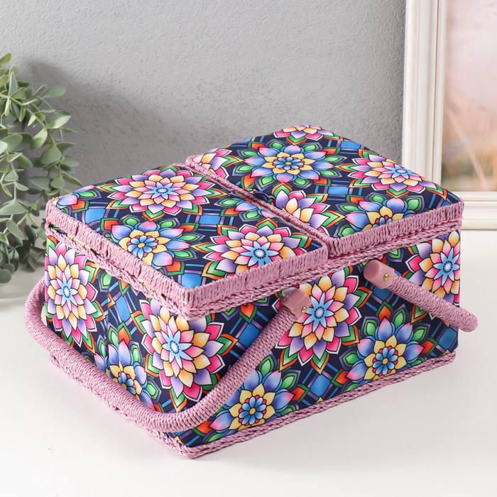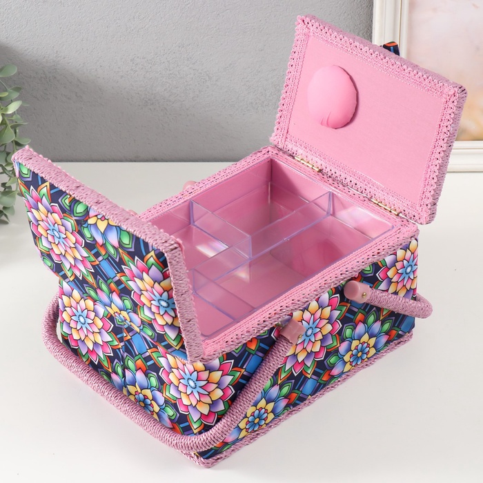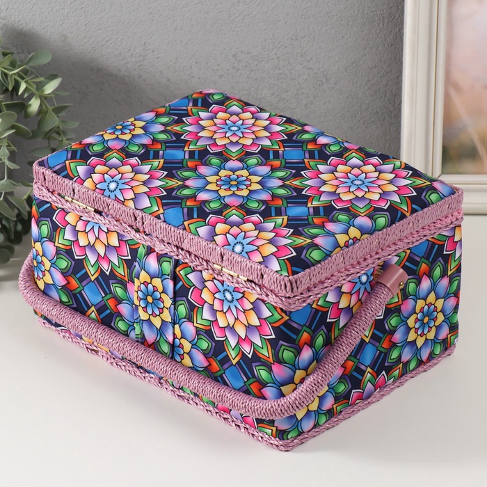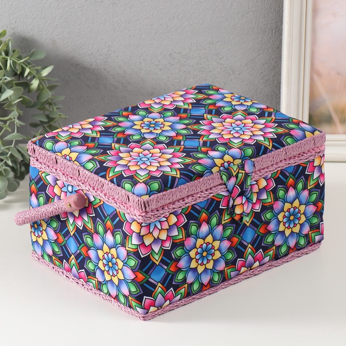 Шкатулка для рукоделия и шитья «Цветы калейдоскопа», хранение ниток, иголок, мелочи, 19×26×14.5 см 7 фото