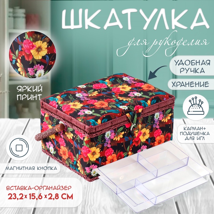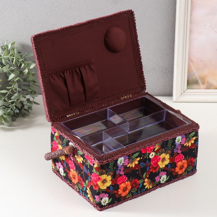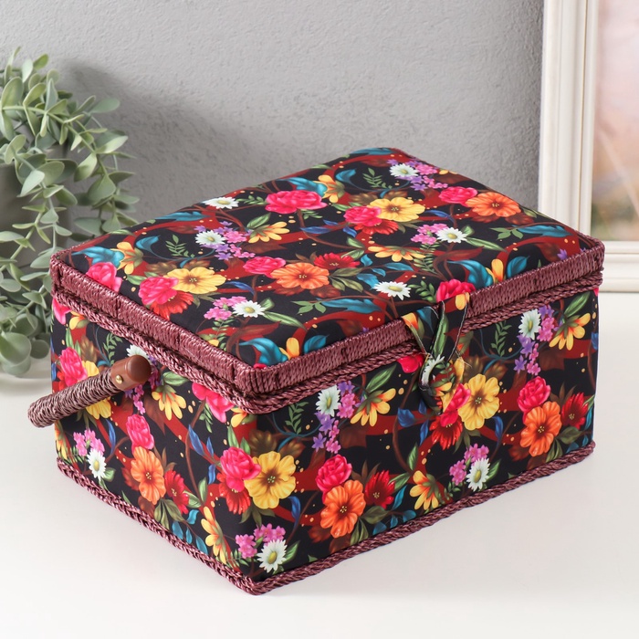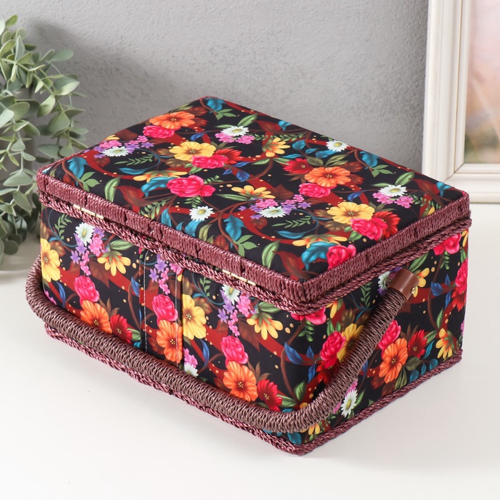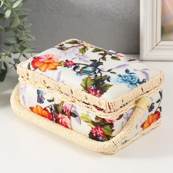 Шкатулка для рукоделия и шитья «Садовые цветы», хранение ниток, иголок, мелочи, 18×12×9.5 см 6 фото