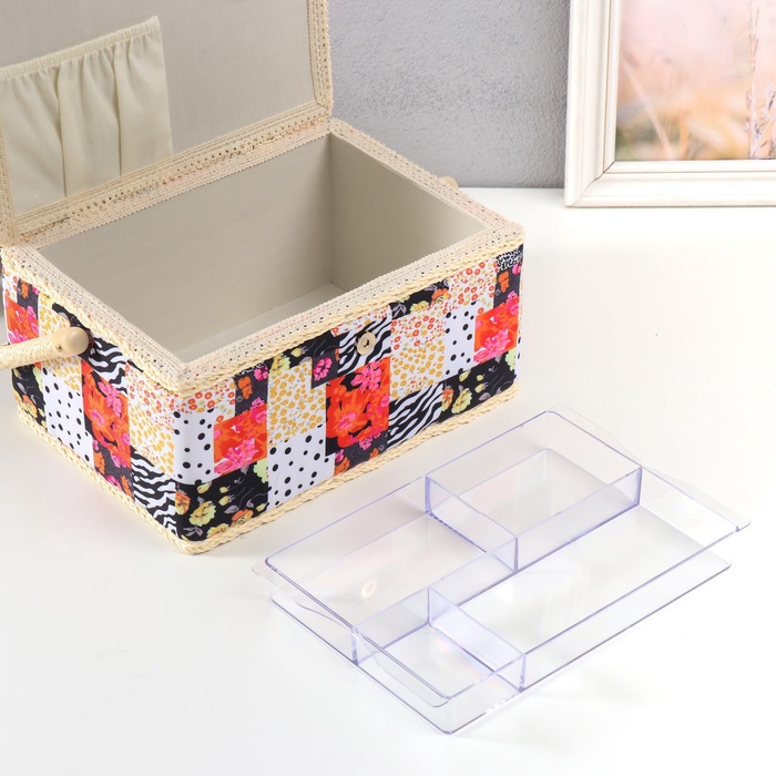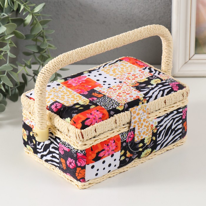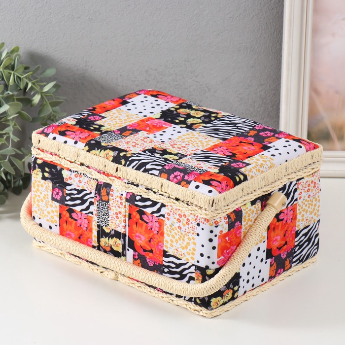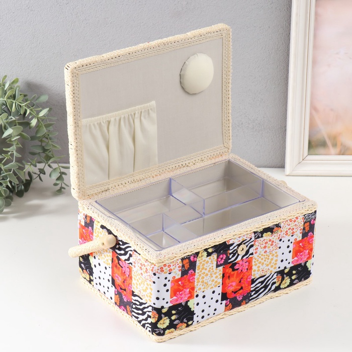 Шкатулка для рукоделия и шитья «Пэчворк. Цветы, горох и зебра», хранение ниток, иголок, мелочи, 19×26×14.5 см 7 фото