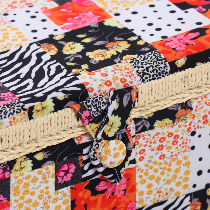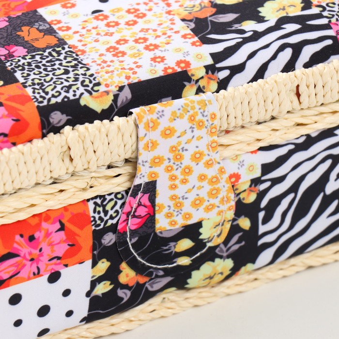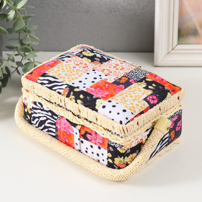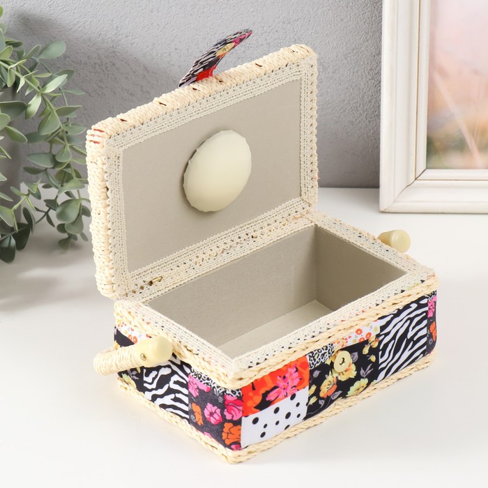 Шкатулка для рукоделия и шитья «Пэчворк. Цветы, горох и зебра», хранение ниток, иголок, мелочи, 18×12×9.5 см 4 фото