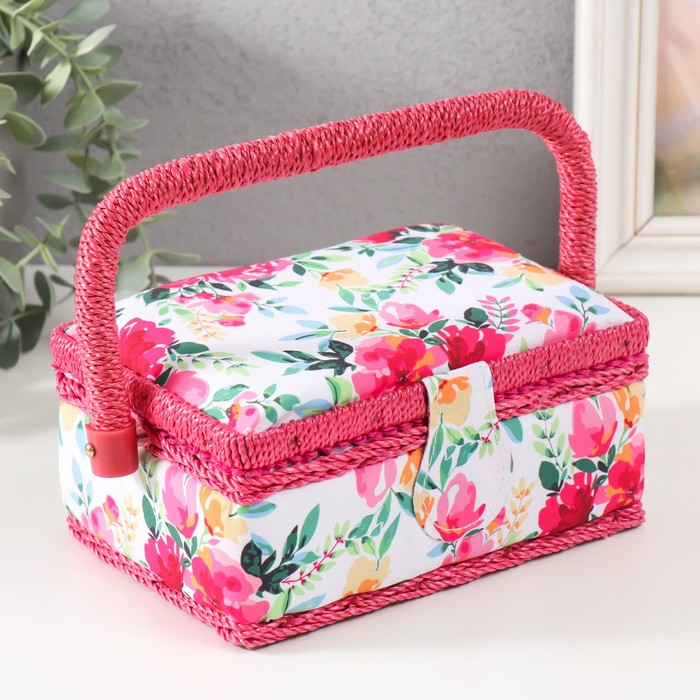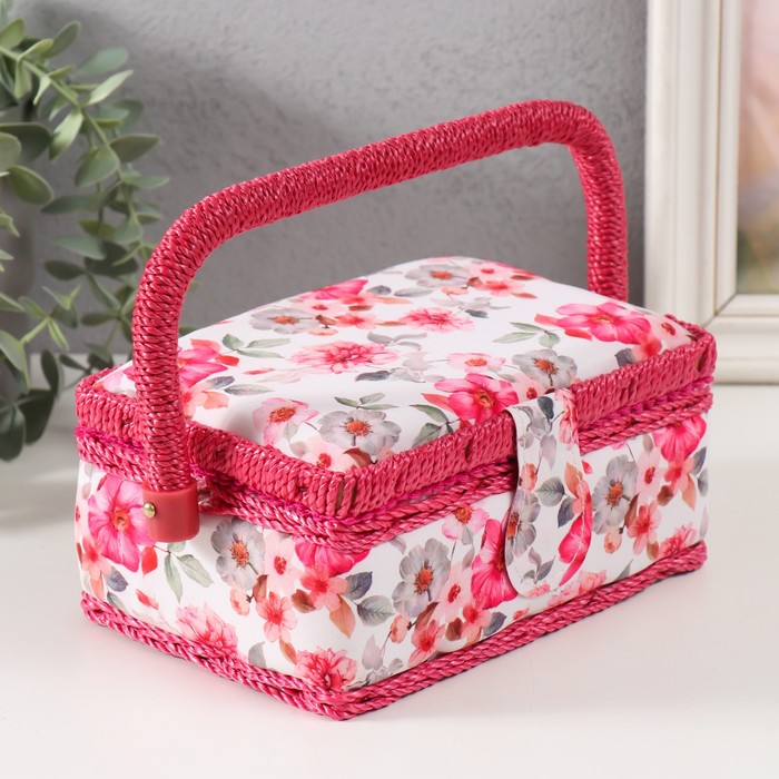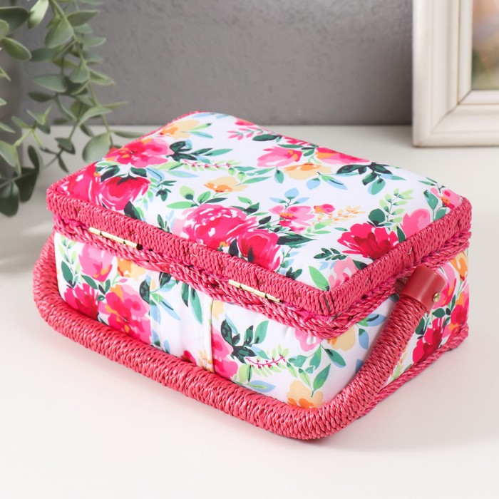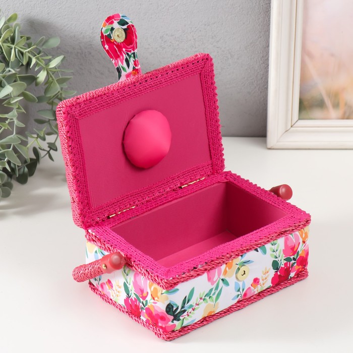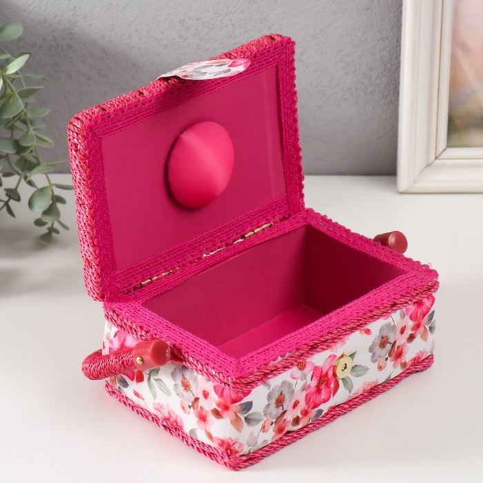 Шкатулка для рукоделия и шитья «Розовые цветы», хранение ниток, иголок, мелочи, 18×12×9.5 см 4 фото