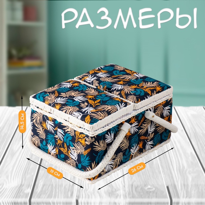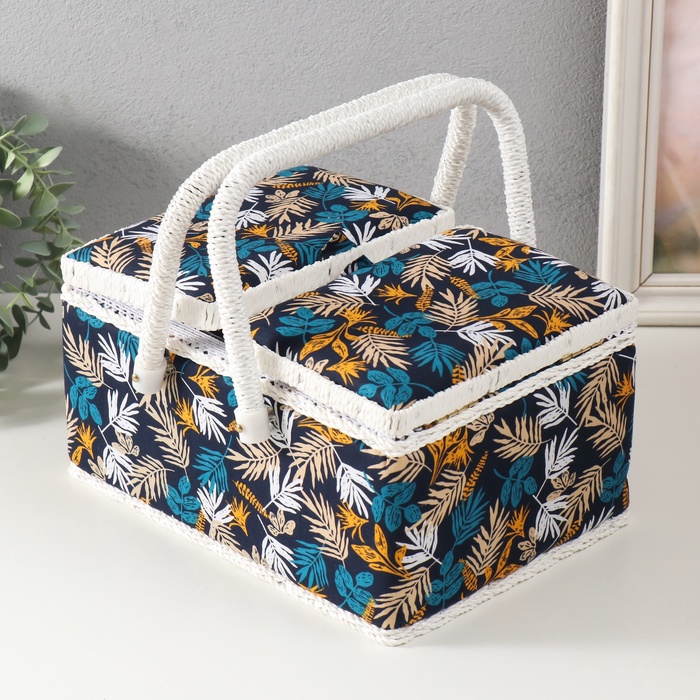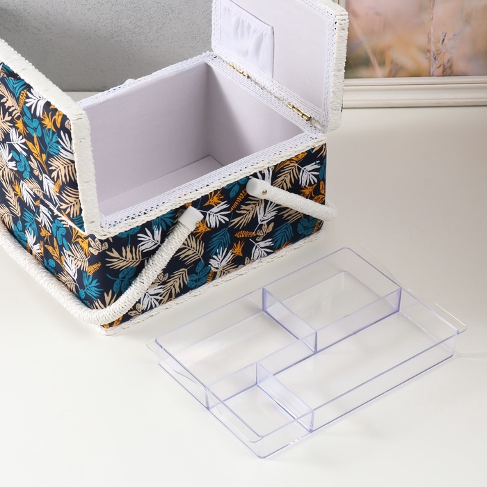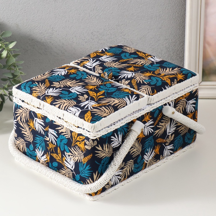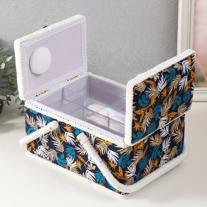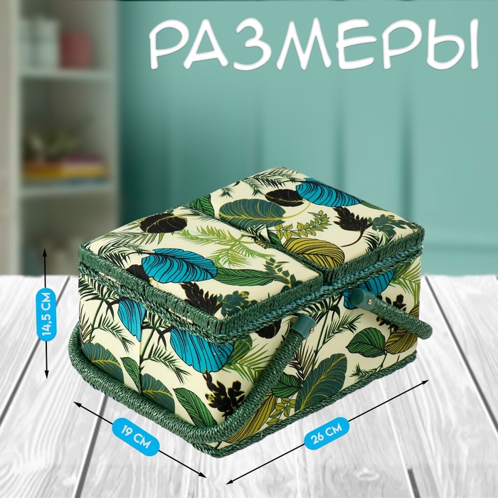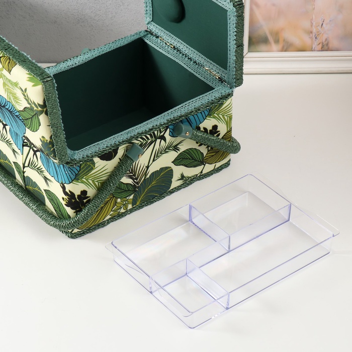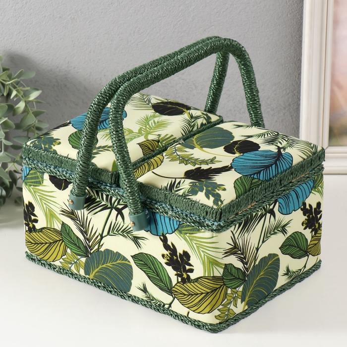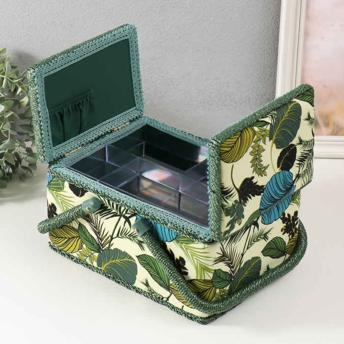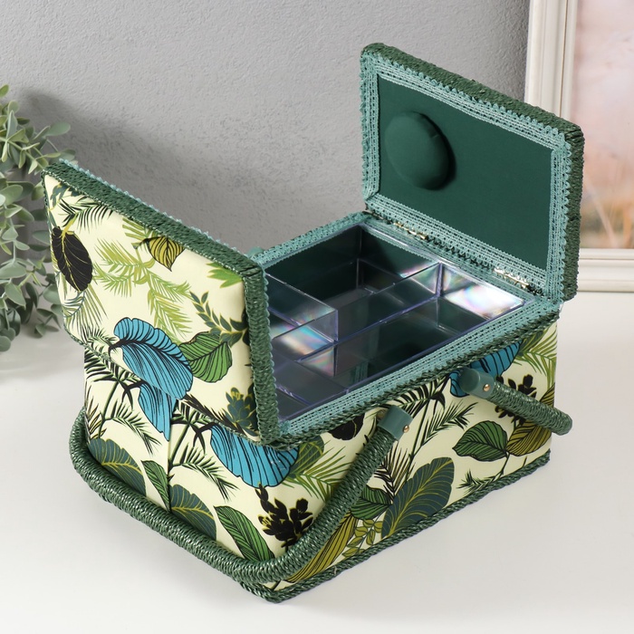 Шкатулка для рукоделия и шитья «Тропические листья», хранение ниток, иголок, мелочи, 24×16×11 см 7 фото