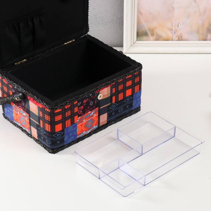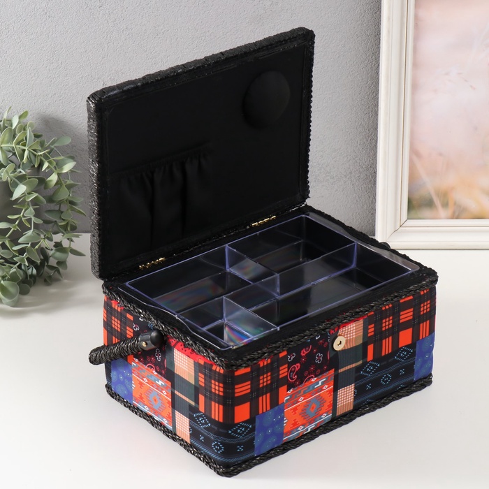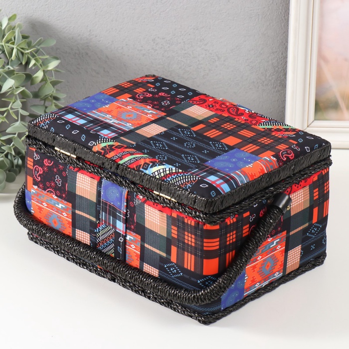 Шкатулка для рукоделия и шитья «Пэчворк. Узоры», хранение ниток, иголок, мелочи, 19×26×14.5 см 7 фото