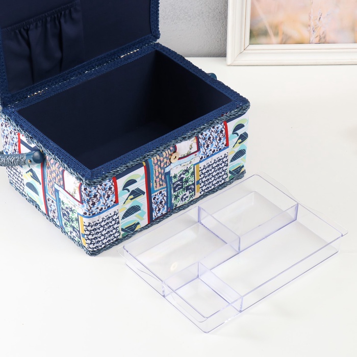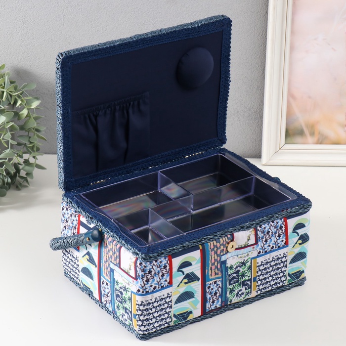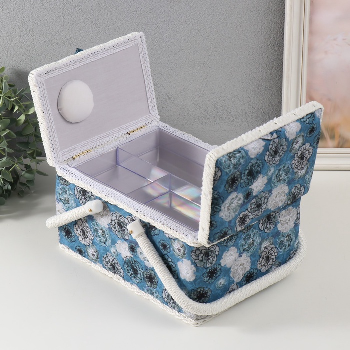 Шкатулка для рукоделия и шитья «Пэчворк. Синие цветы», хранение ниток, иголок, мелочи, 19×26×14.5 см 7 фото