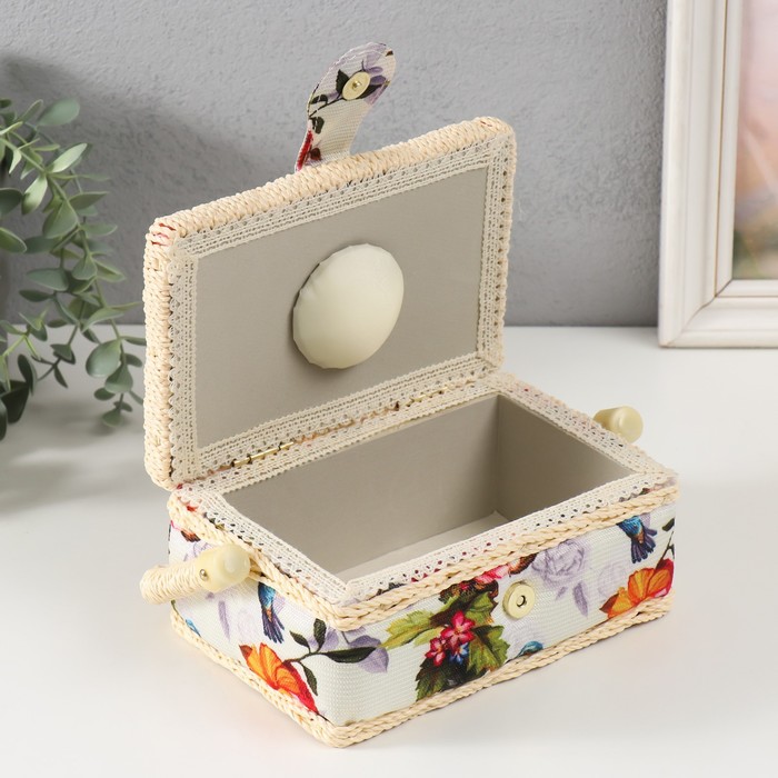 Шкатулка для рукоделия и шитья «Птицы в розовом саду», хранение ниток, иголок, мелочи, 18×12×9.5 см 4 фото