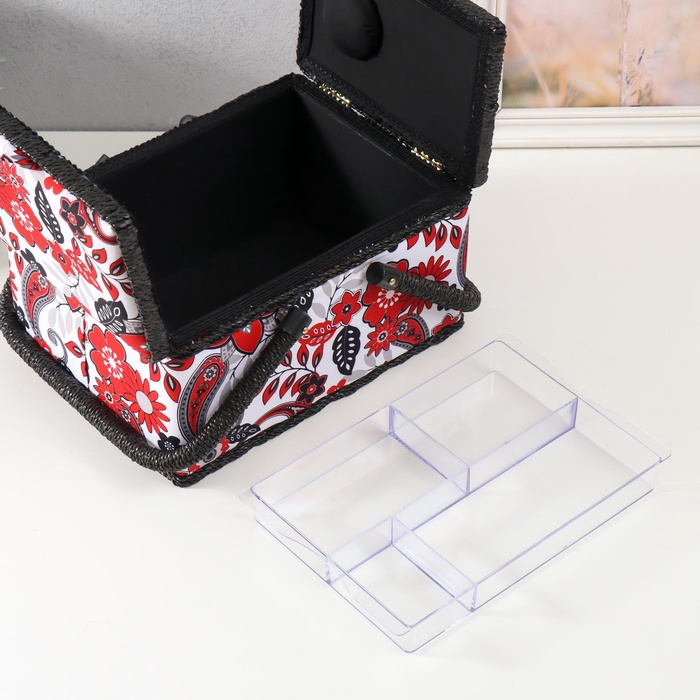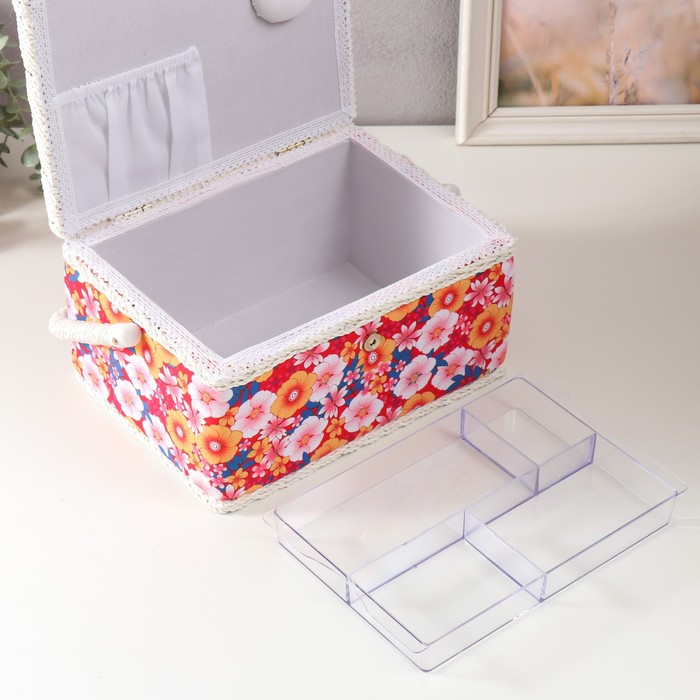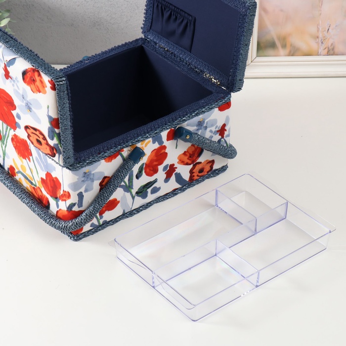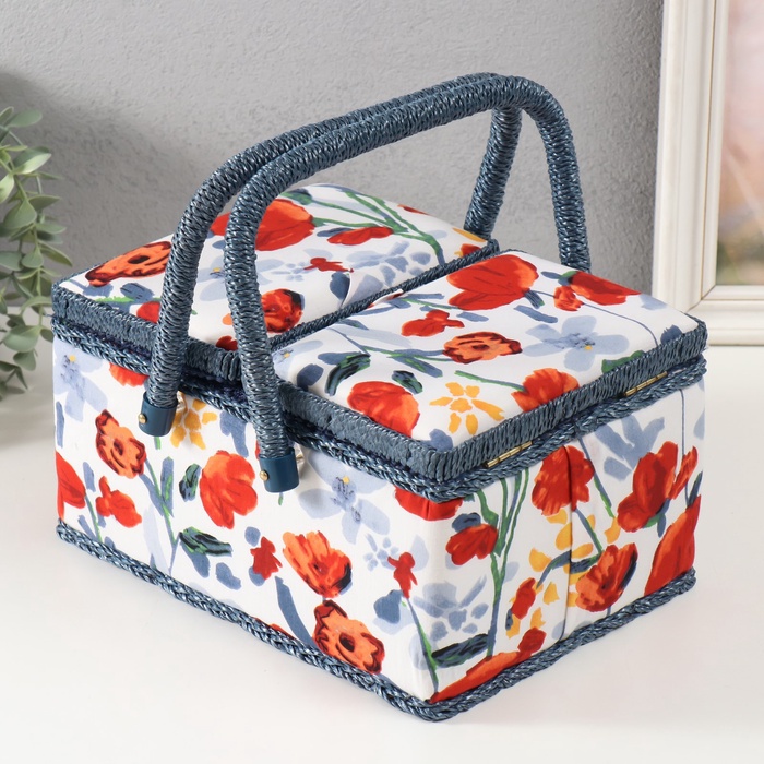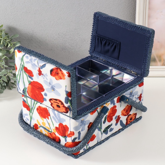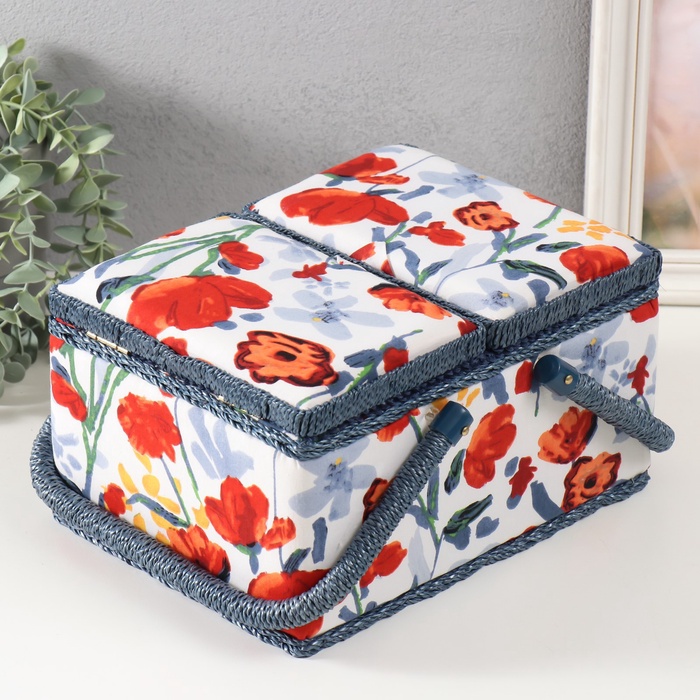 Шкатулка для рукоделия и шитья «Красные маки на белом», хранение ниток, иголок, мелочи, 19×26×14.5 см 7 фото