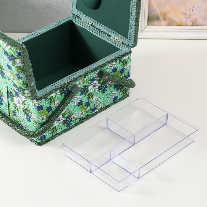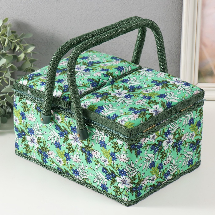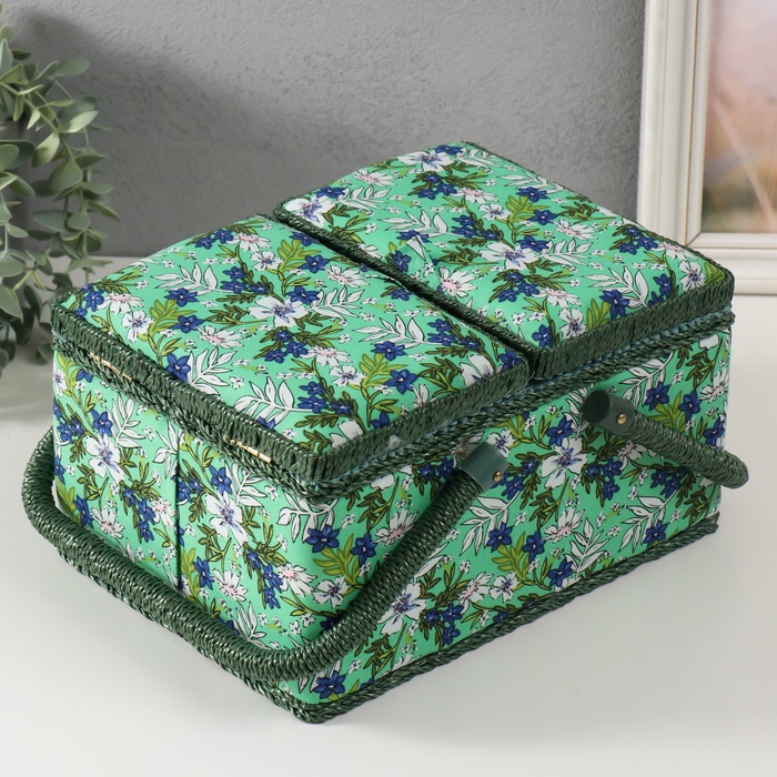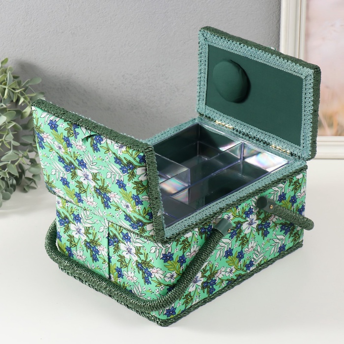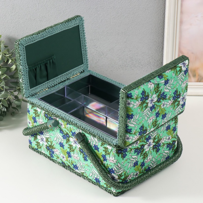 Шкатулка для рукоделия и шитья «Летние цветы на зелёном», хранение ниток, иголок, мелочи, 24×16×11 см 7 фото