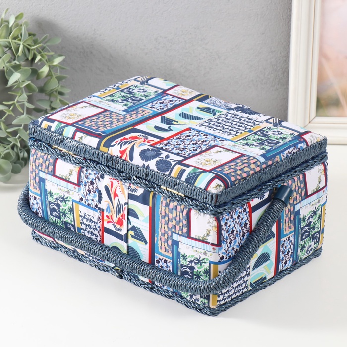 Шкатулка для рукоделия и шитья «Пэчворк. Узоры», хранение ниток, иголок, мелочи, 18×12×9.5 см 4 фото