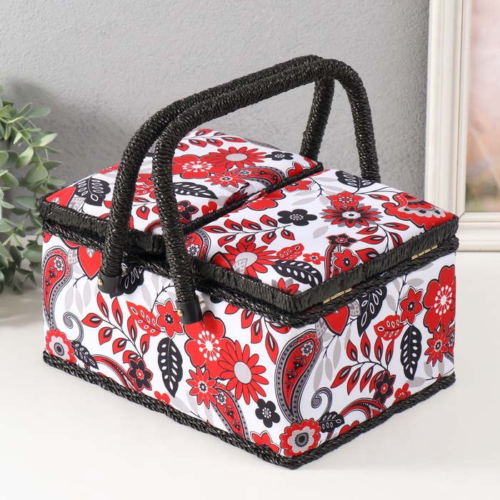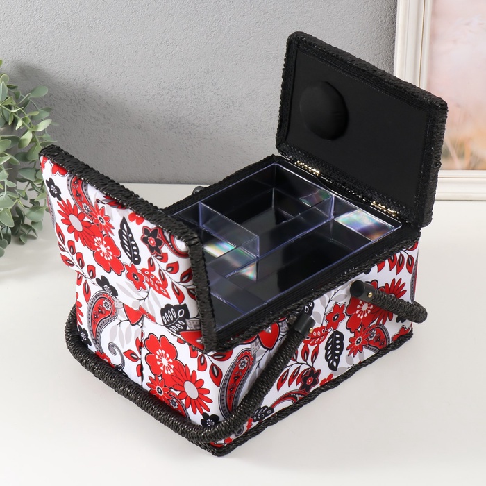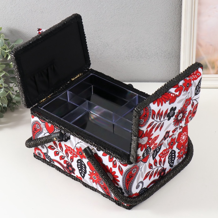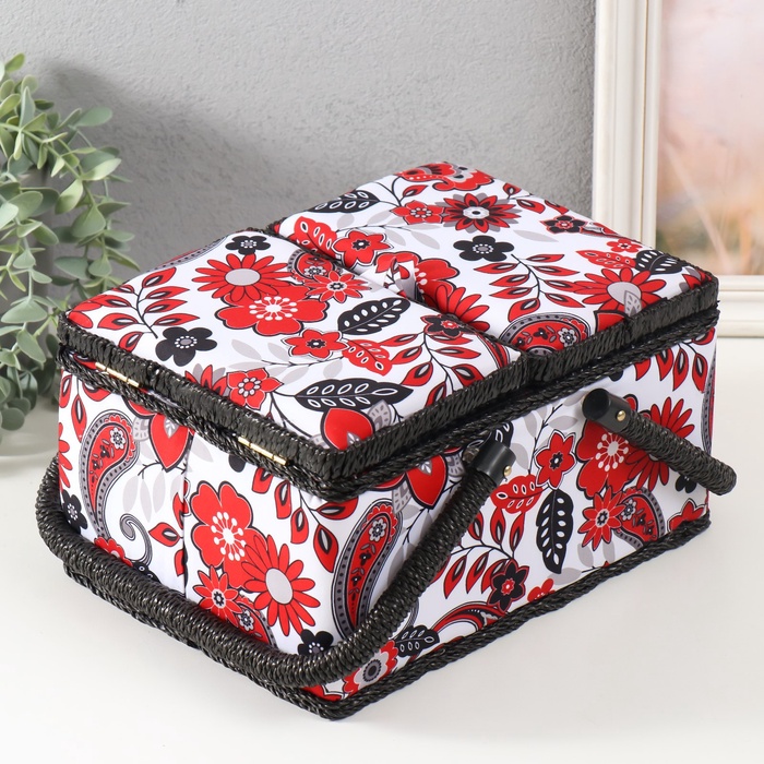 Шкатулка для рукоделия и шитья «Народный цветочный узор», хранение ниток, иголок, мелочи, 19×26×14.5 см 8 фото