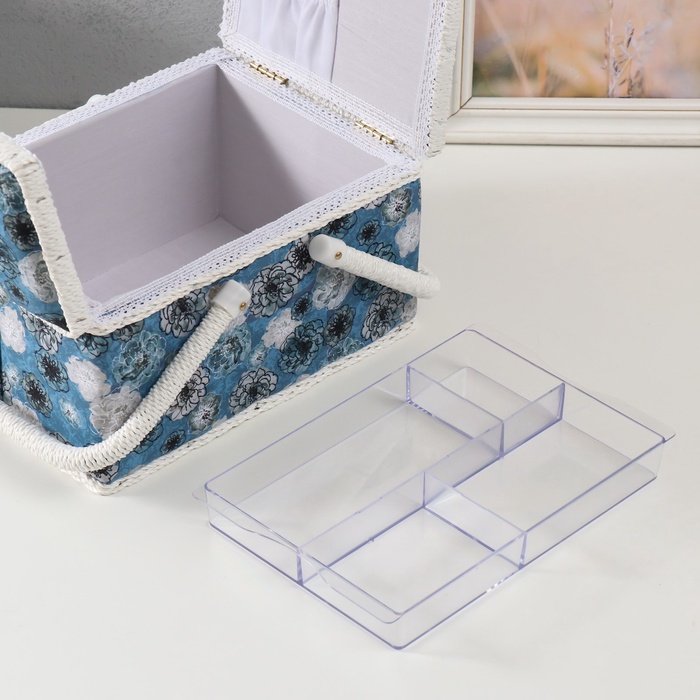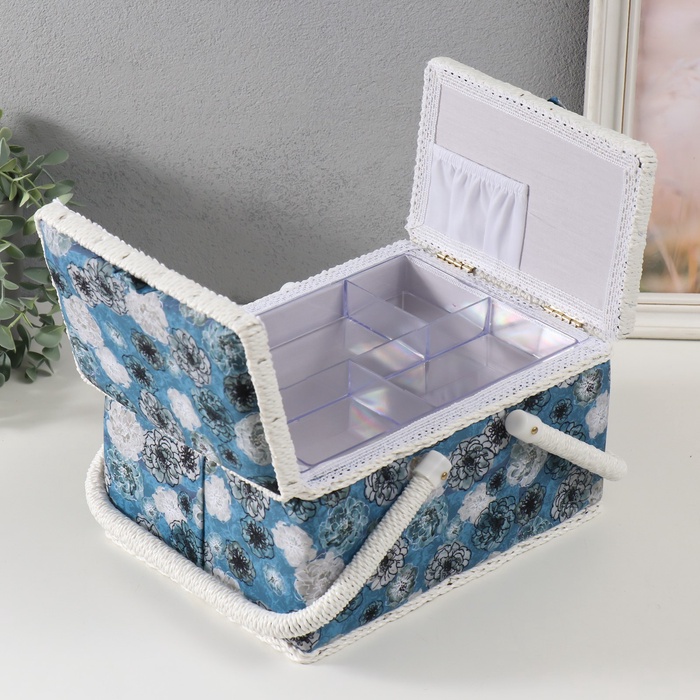 Шкатулка для рукоделия и шитья «Цветение на белом», хранение ниток, иголок, мелочи, 19×26×14.5 см 5 фото