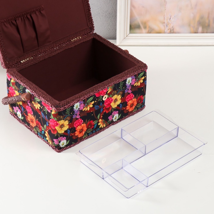 Шкатулка для рукоделия и шитья «Народный цветочный узор», хранение ниток, иголок, мелочи, 24×16×11 см 7 фото