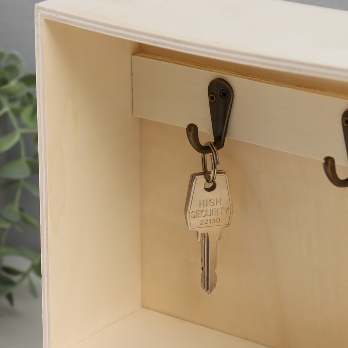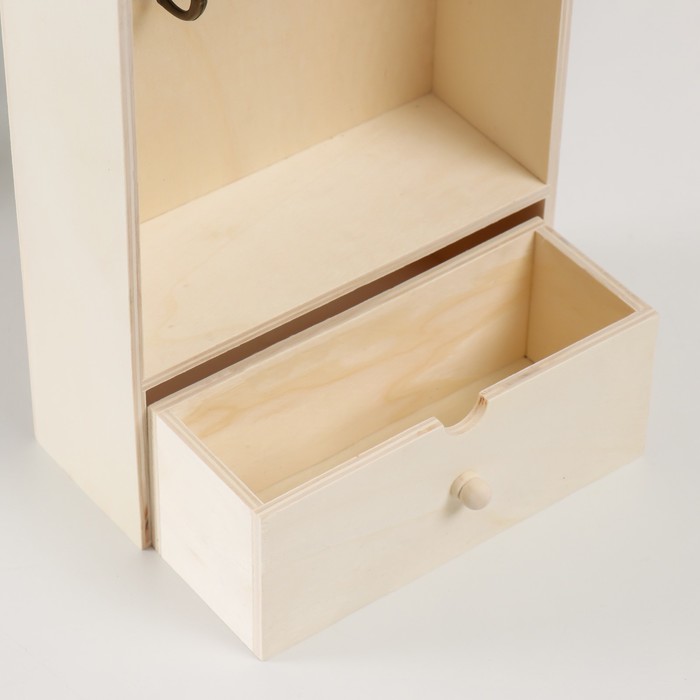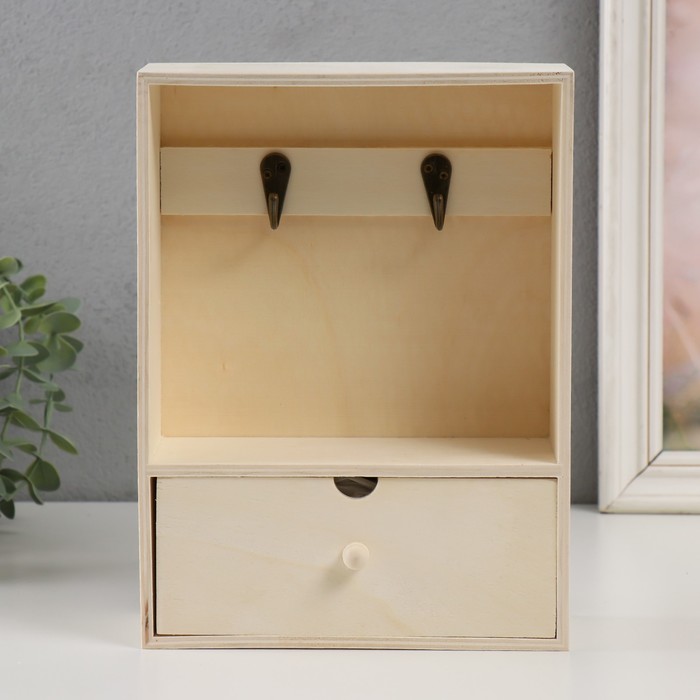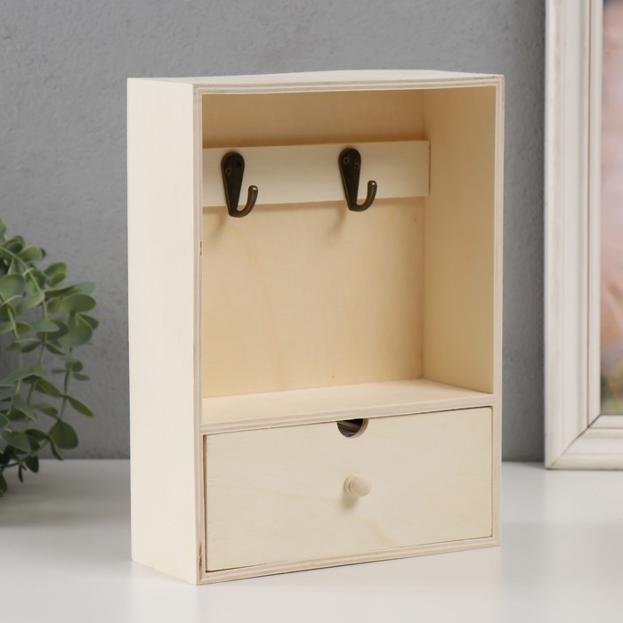 Ключница настенная с ящичком «Прямоугольная», дерево, 2 крючка, заготовка для творчества, 18.5×7×25 см 5 фото