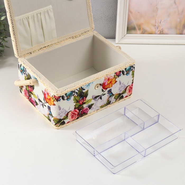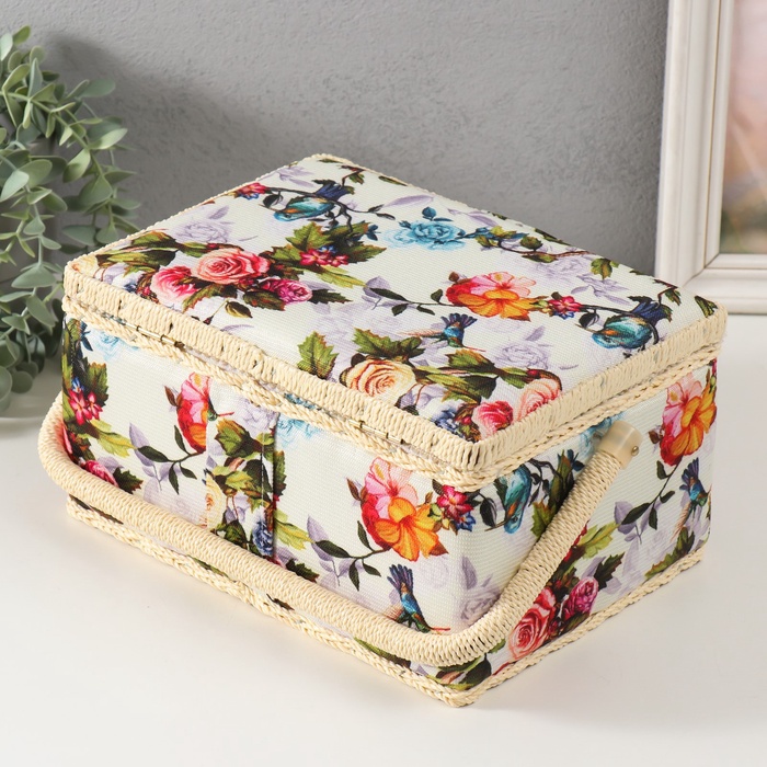 Шкатулка для рукоделия и шитья «Птицы в розовом саду», хранение ниток, иголок, мелочи, 19×26×14.5 см 7 фото