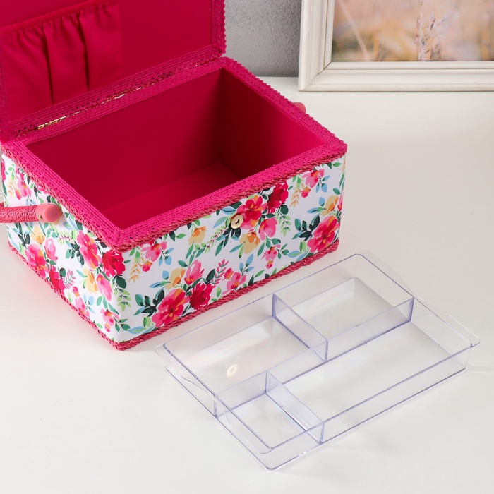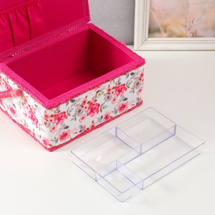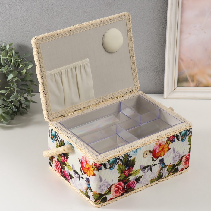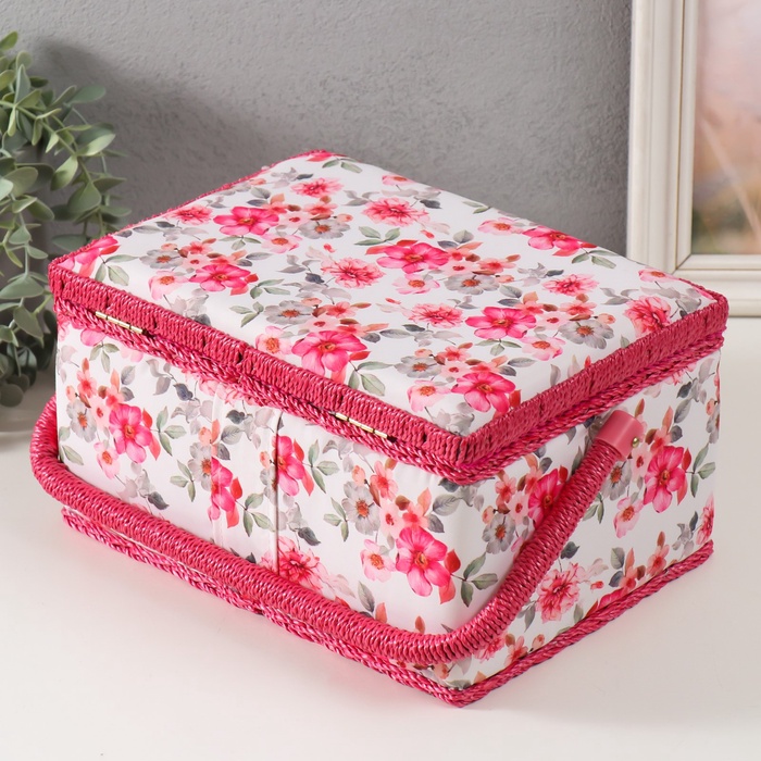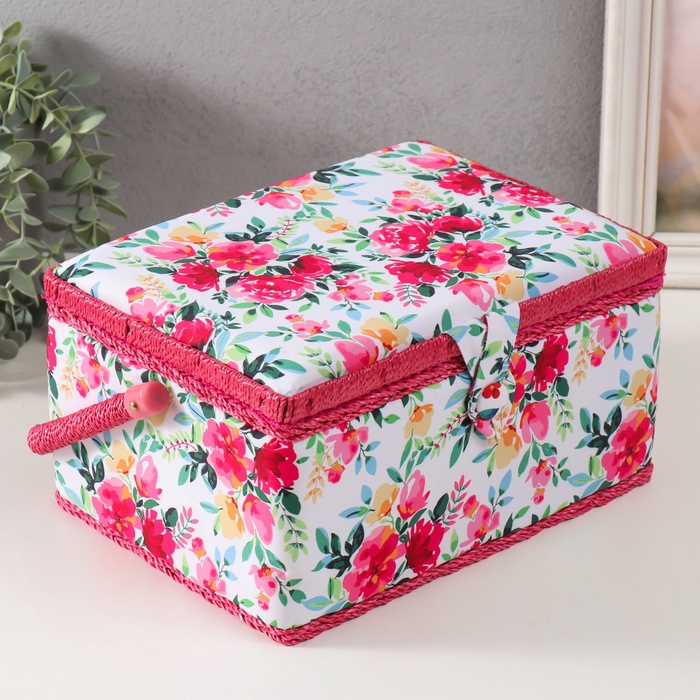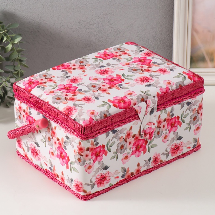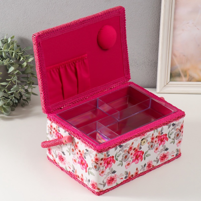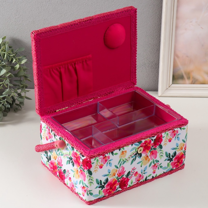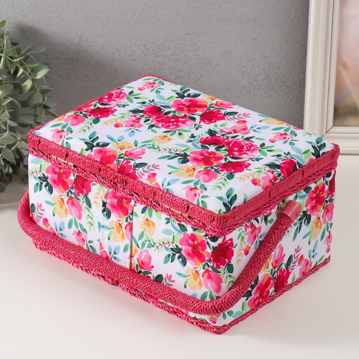 Шкатулка для рукоделия и шитья «Розовые цветы», хранение ниток, иголок, мелочи, 19×26×14.5 см 7 фото