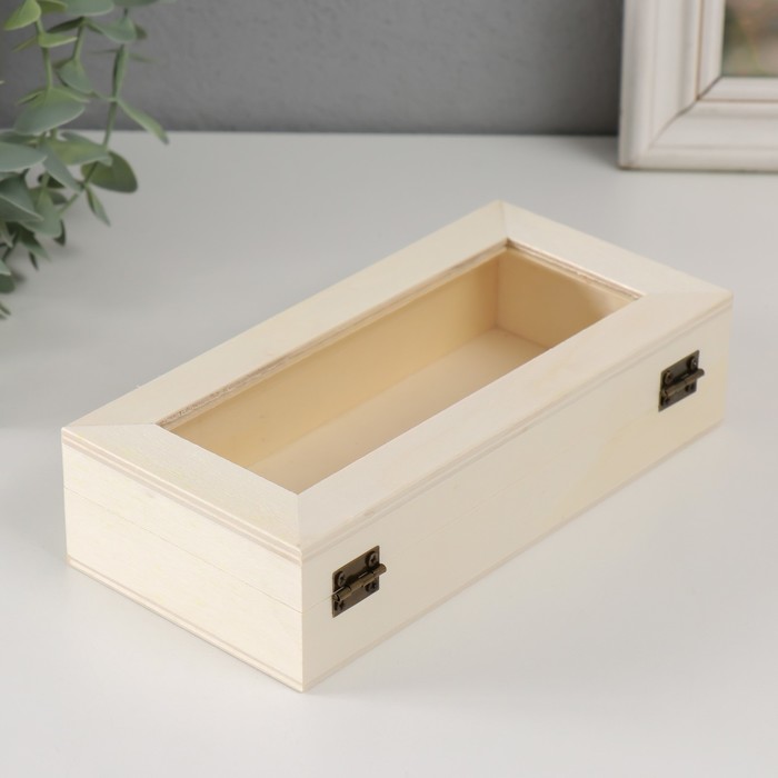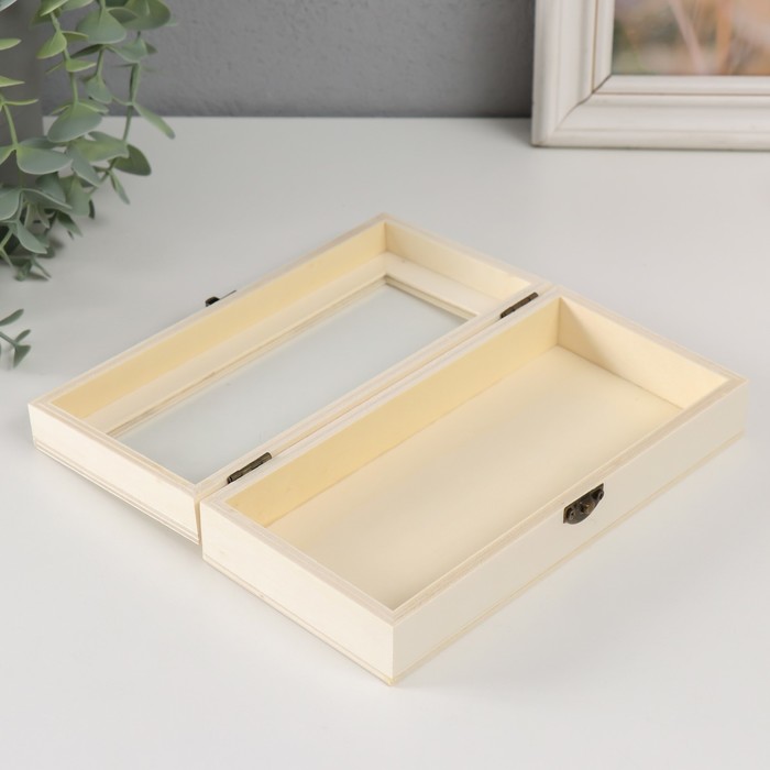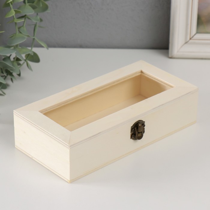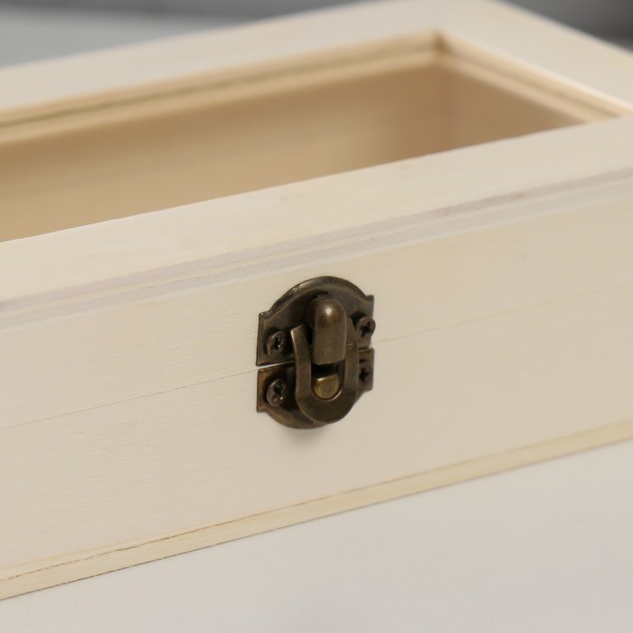 Шкатулка для росписи дерево со стеклом «Прямоугольная», для творчества, декора, замок пряжка, 18.5×9×4.5 см 4 фото