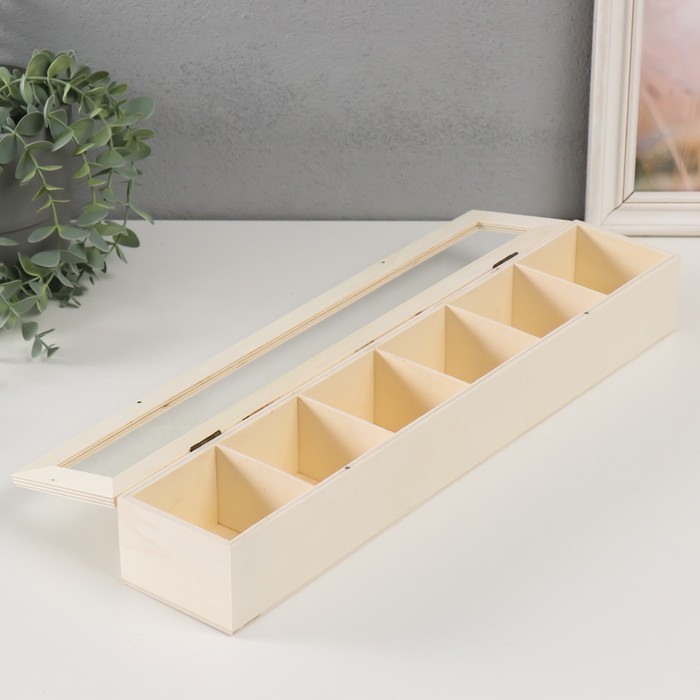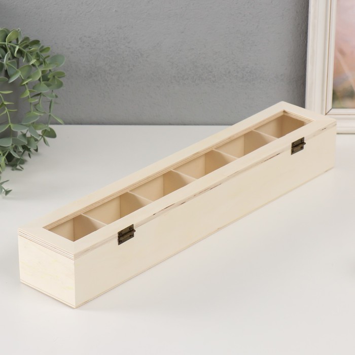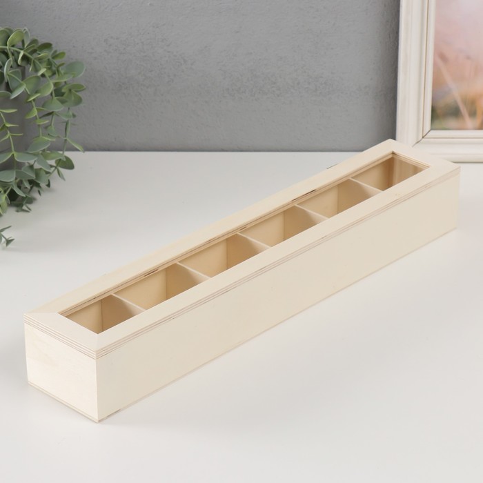 Шкатулка для росписи дерево со стеклом и делениями «Прямоугольная», для творчества, декора, без замка, 45×8.5×6.5 см 3 фото