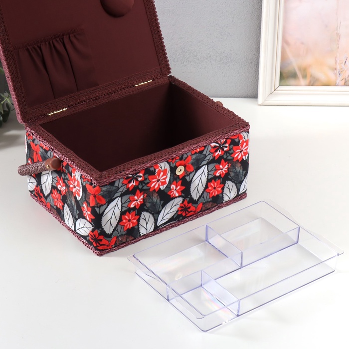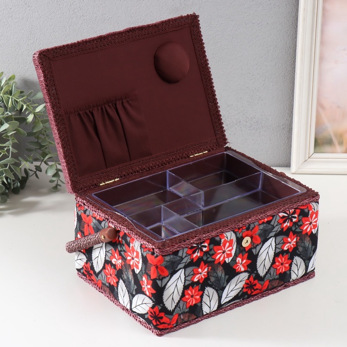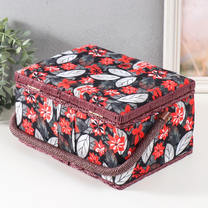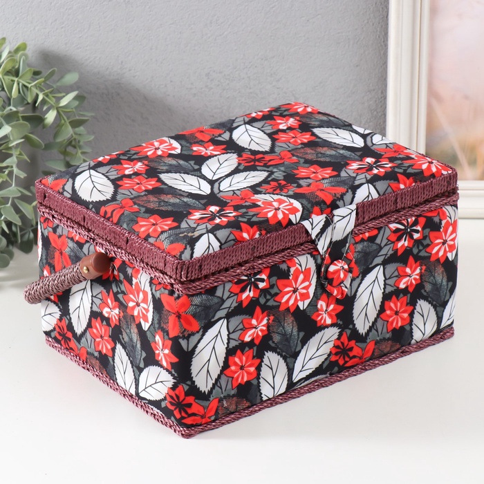 Шкатулка для рукоделия и шитья «Пуансеттия на чёрном», хранение ниток, иголок, мелочи, 19×26×14.5 см 7 фото