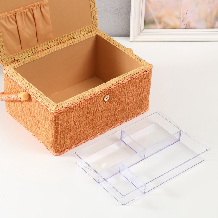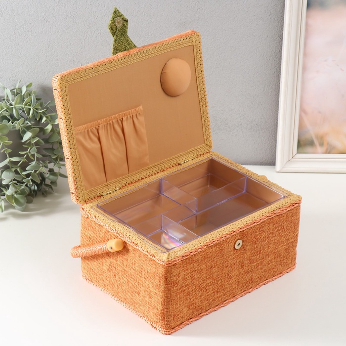 Шкатулка для рукоделия и шитья «Зелёно-оранжевая», хранение ниток, иголок, мелочи, 19×26×14.5 см 7 фото