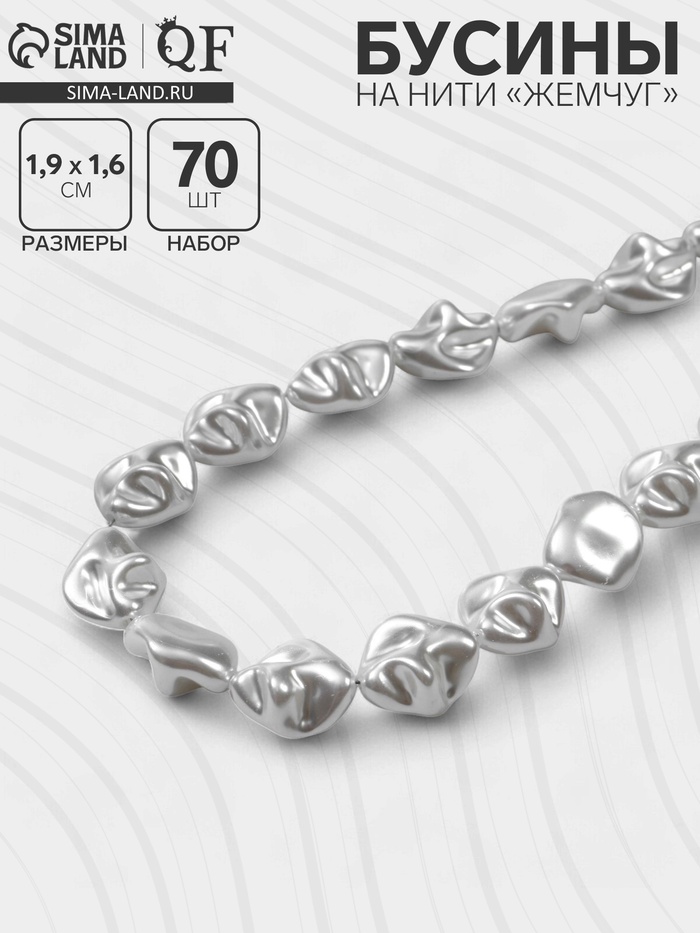 Бусины пластиковые на нити «Жемчуг», 1.9×1.6×1 см, набор 70 шт., цвет белый 5 фото