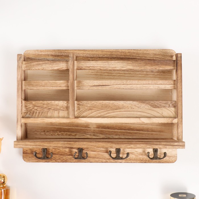 Настенные крючки декоративные для росписи с карманом и полочкой «Натуральный», дерево, 8.5×38×28 см 4 фото