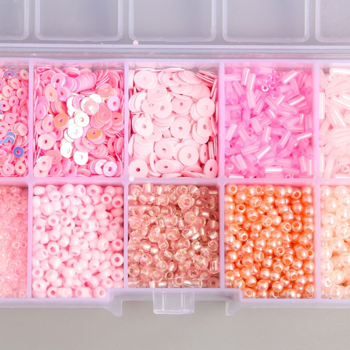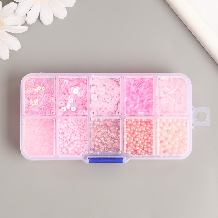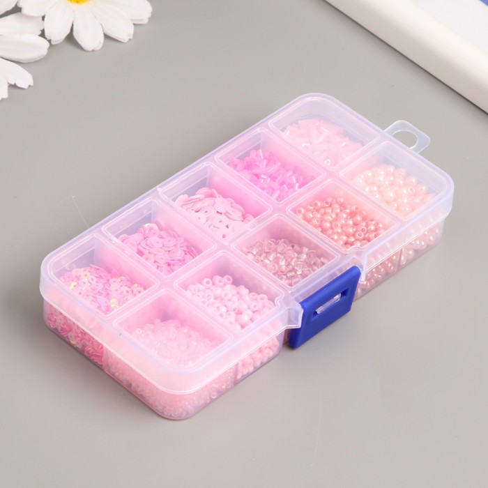 Бисер стекло 8/0, 12/0 в шкатулке «Розовый», бусины, стеклярус и пайетки, 13×6.5×2.3 см 4 фото
