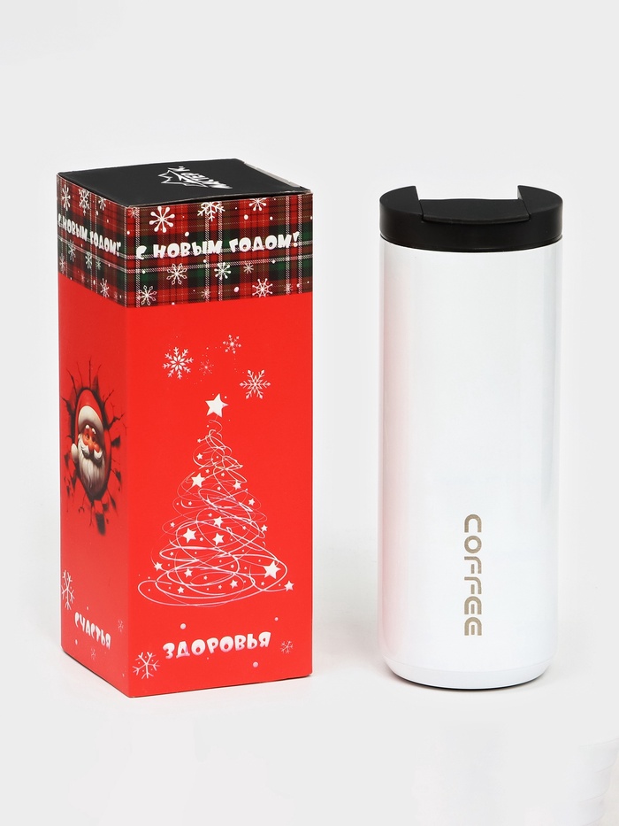 Термокружка, 500 мл, Coffee, сохраняет тепло 8 ч, белая 9 фото