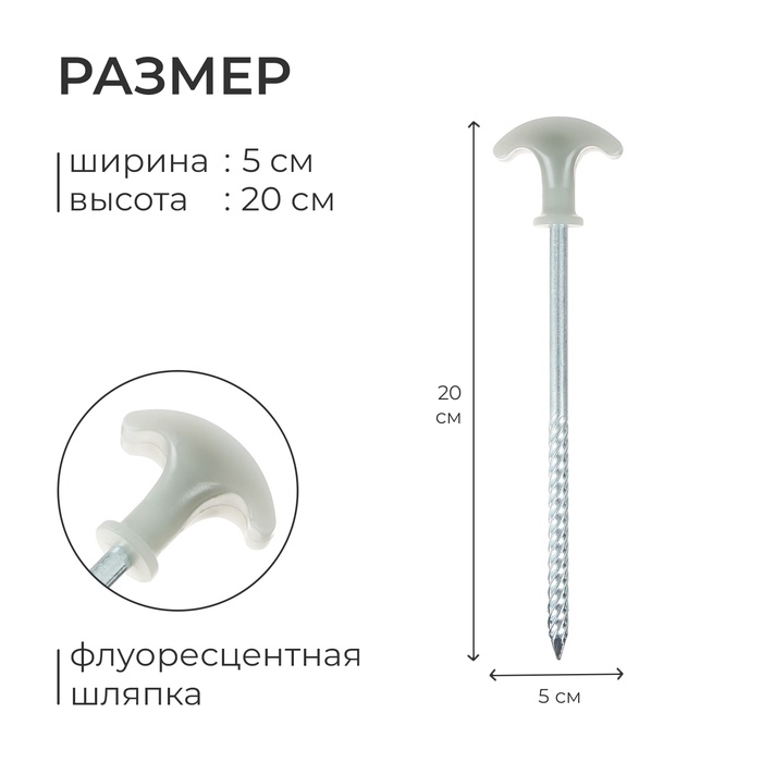 Колышек для палатки, с флуоресцентной шляпкой 4 фото