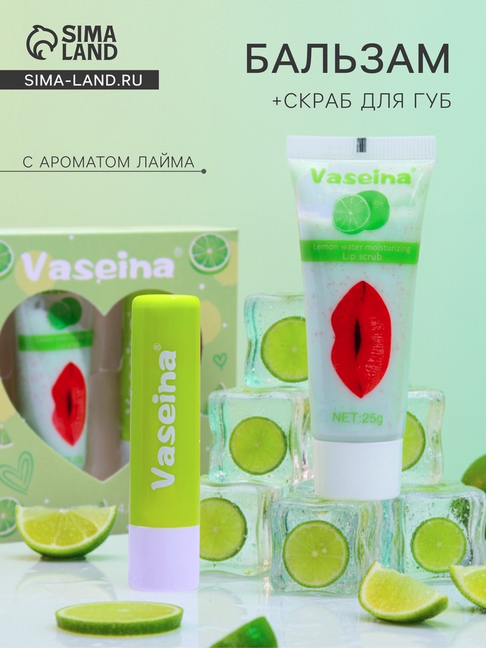 Набор для губ «Лайм» : бальзам и скраб 6 фото
