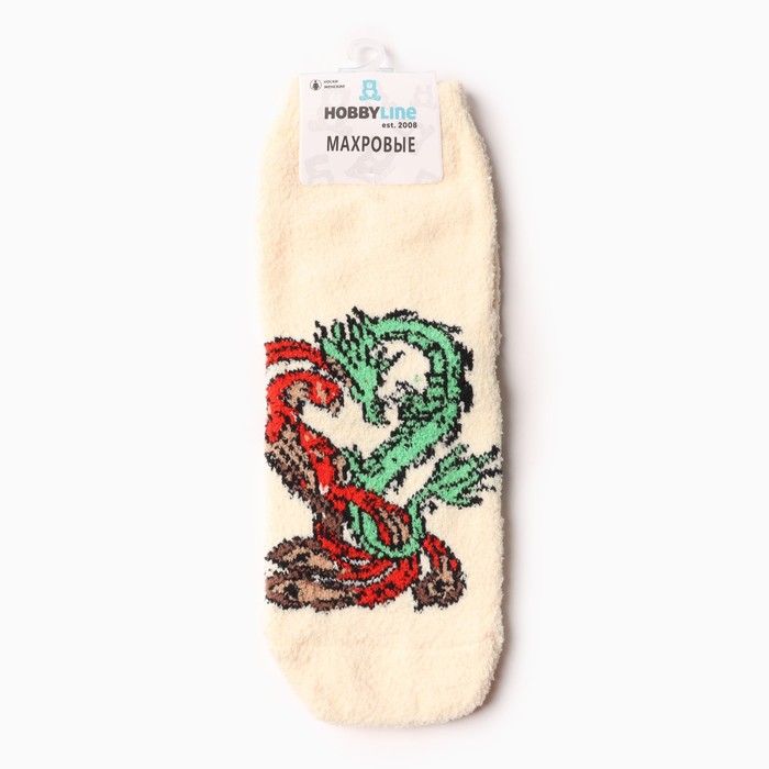 Носки женские махровые «Дракончик и феникс», цвет светло-жёлтый, размер 36-40 3 фото