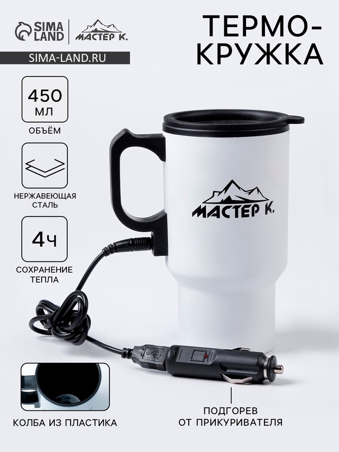 Термокружка автомобильная, 450 мл, «Мастер К», сохраняет тепло 4 ч, 12×17 см, белая 6 фото