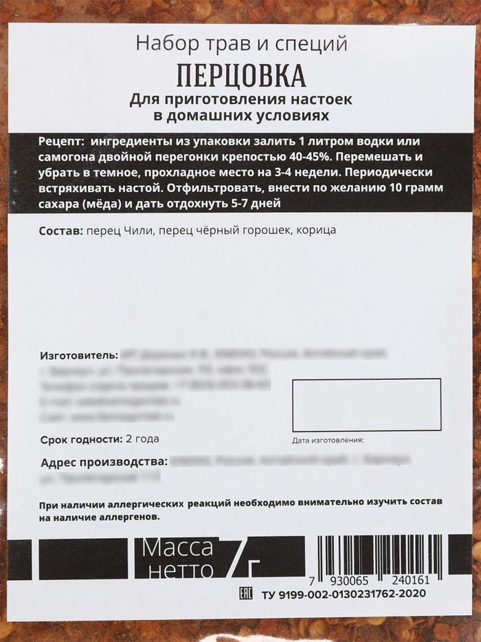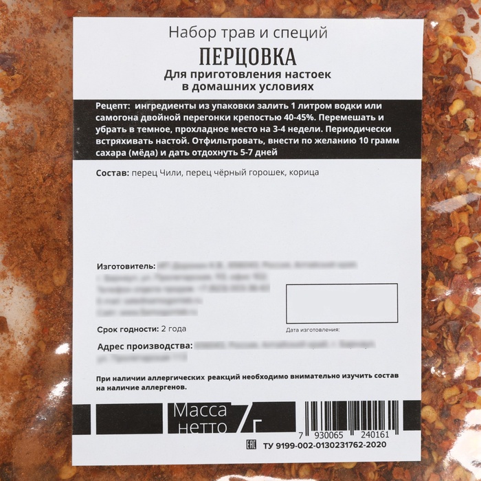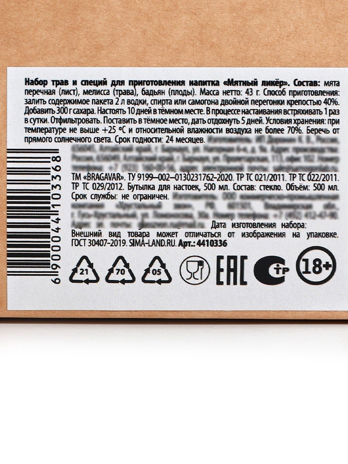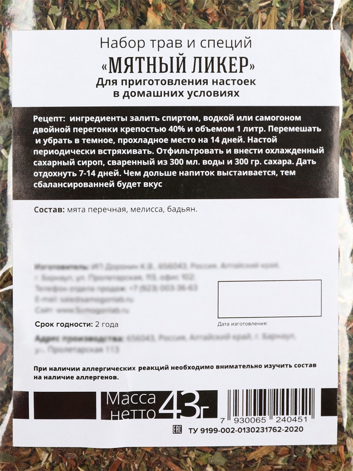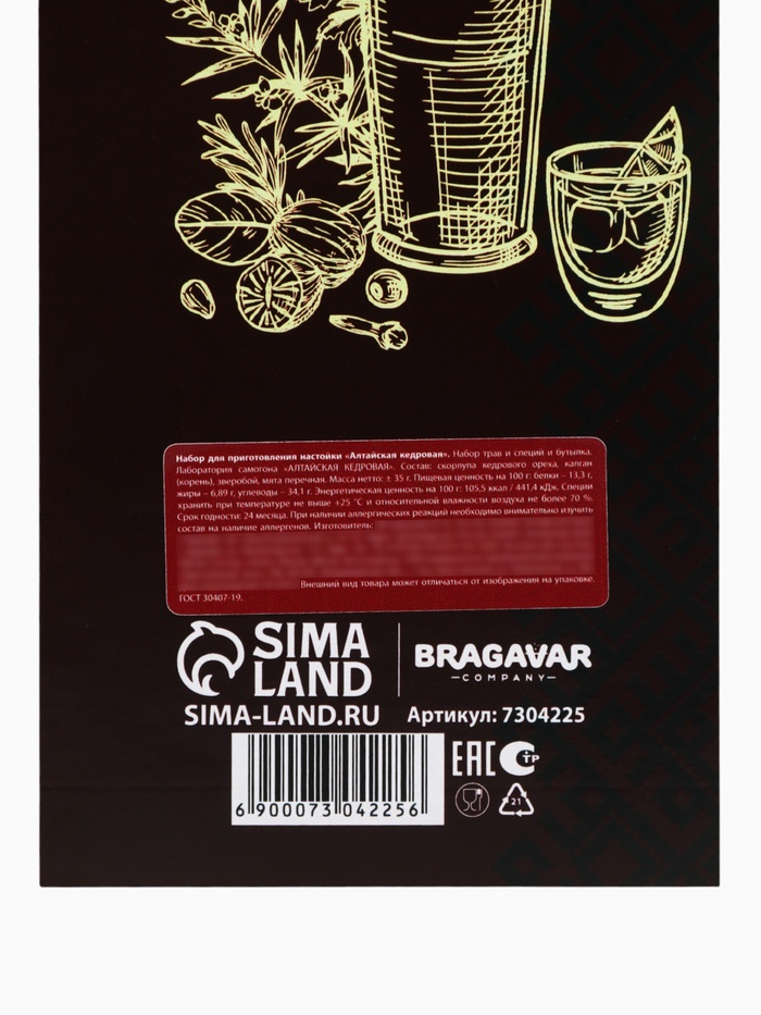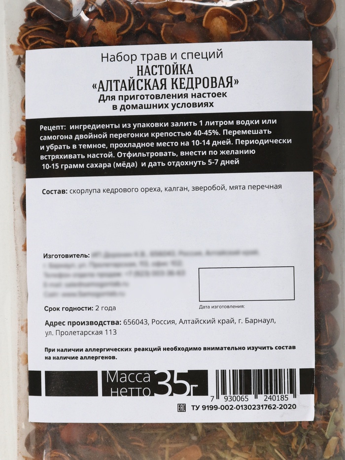 Набор для приготовления настойки «Алтайская кедровая», набор трав и специй, бутылка 10 фото