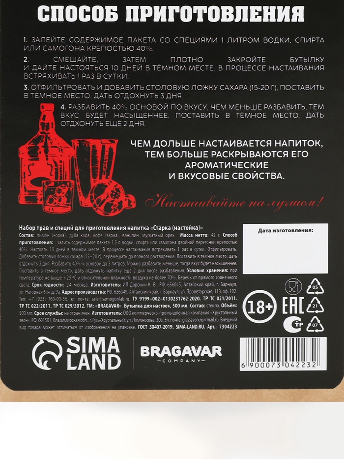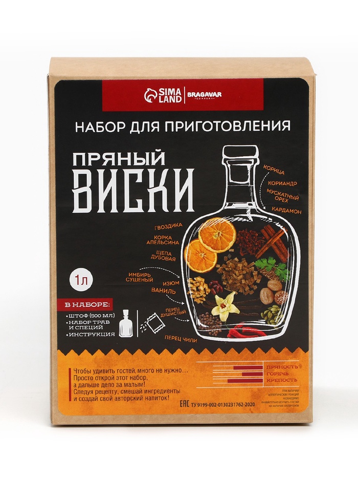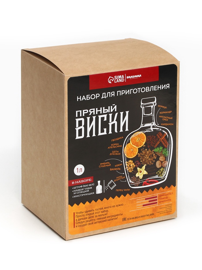 Подарочный набор для приготовления настойки «Пряный виски»: травы и специи 19 г, штоф 500 мл., инструкция 10 фото