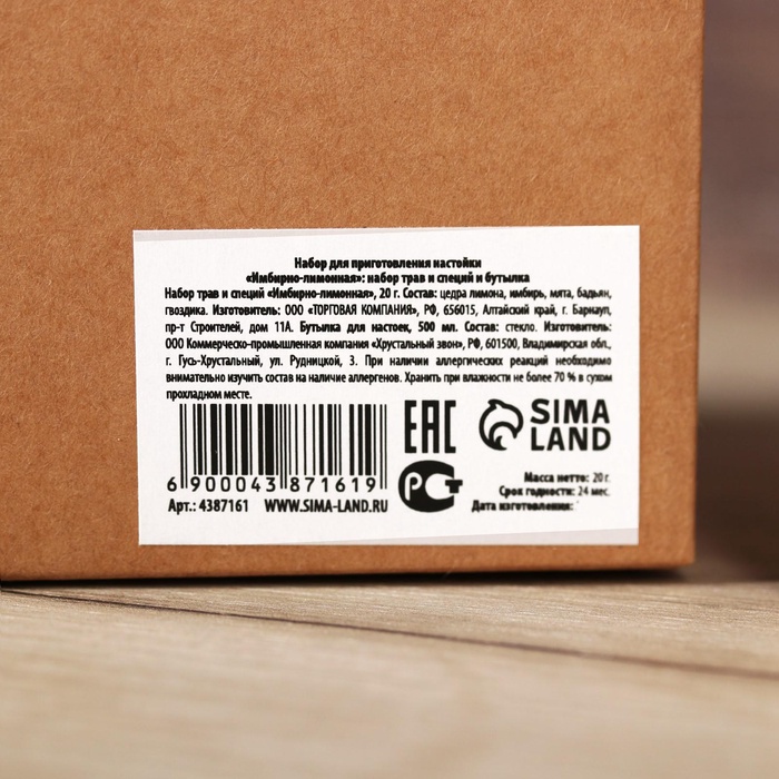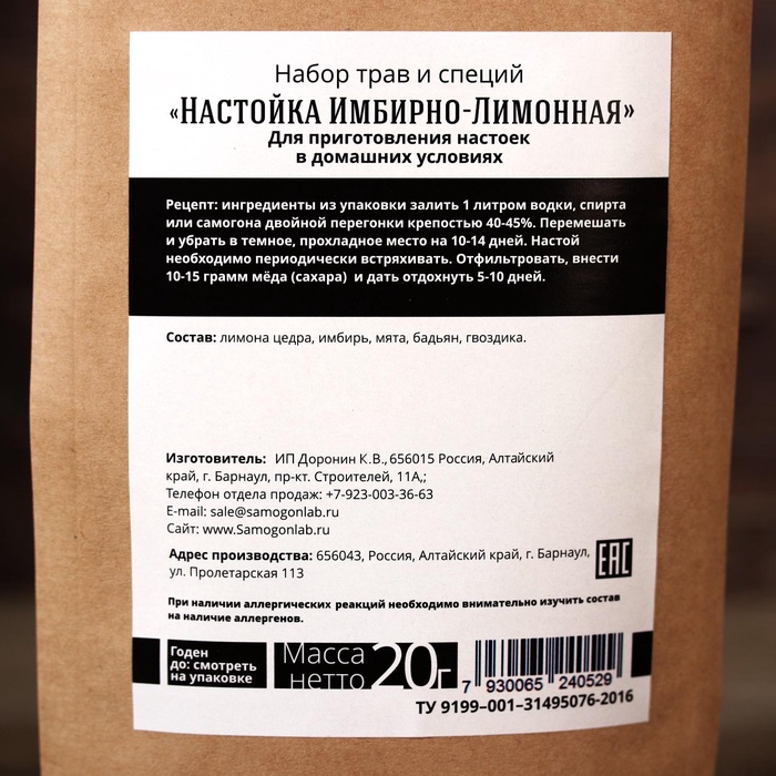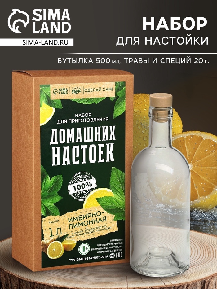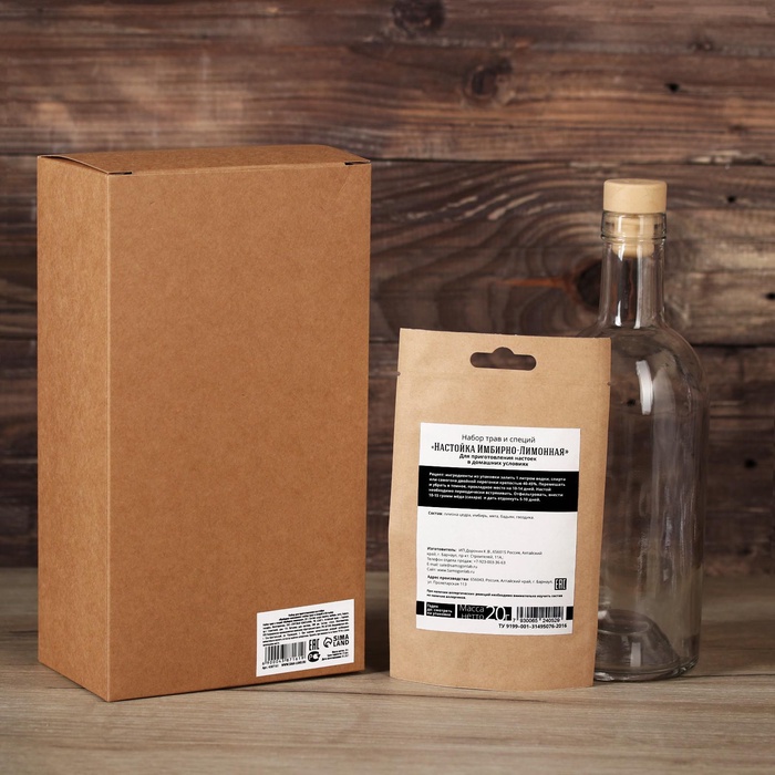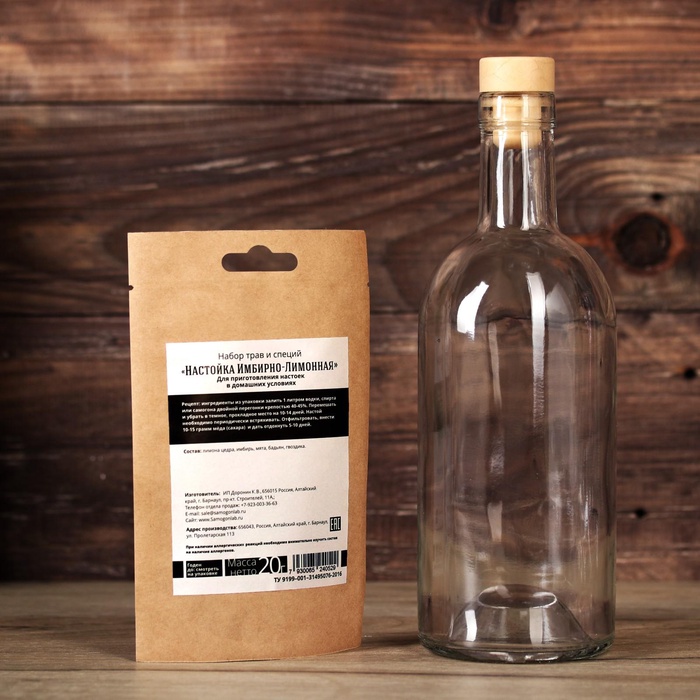 Подарочный набор для приготовления настойки «Имбирно-лимонная», набор трав и специй, бутылка 10 фото