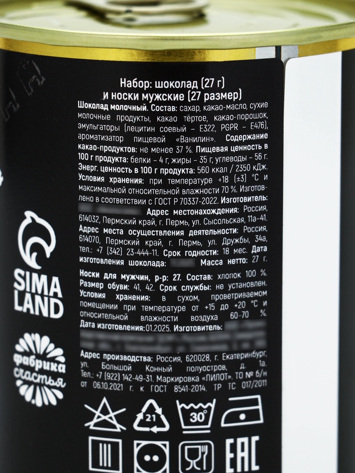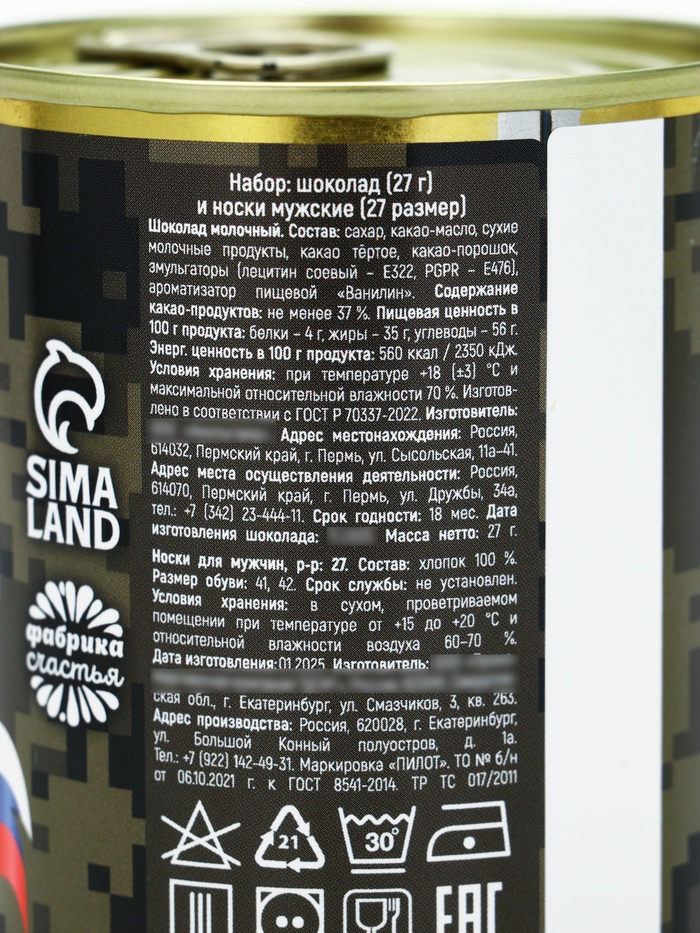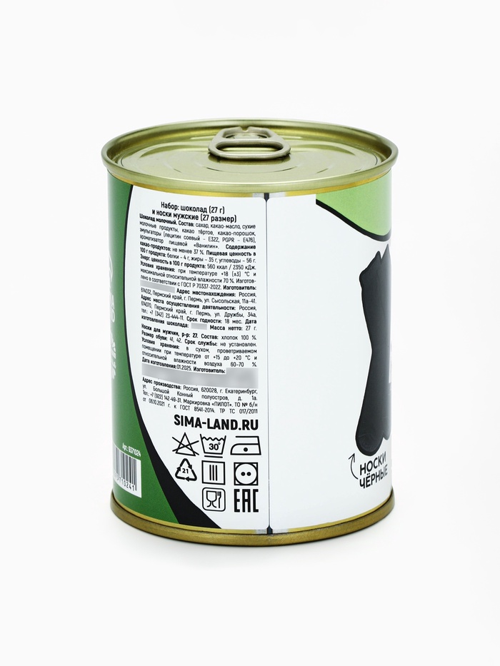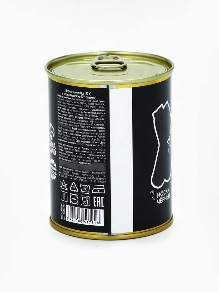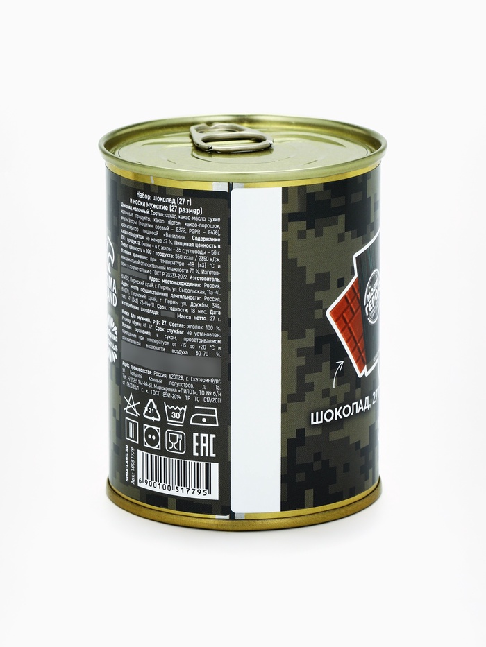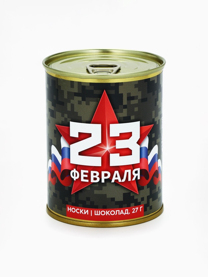 Подарочный набор в консервной банке «23 февраля», шоколад 27 г, носки мужские 43 размер 9 фото