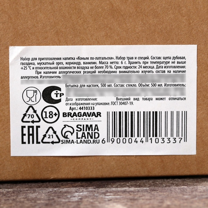 Подарочный набор для приготовления алкоголя «Коньяк»: набор трав и специй, штоф 500 мл., инструкция 10 фото